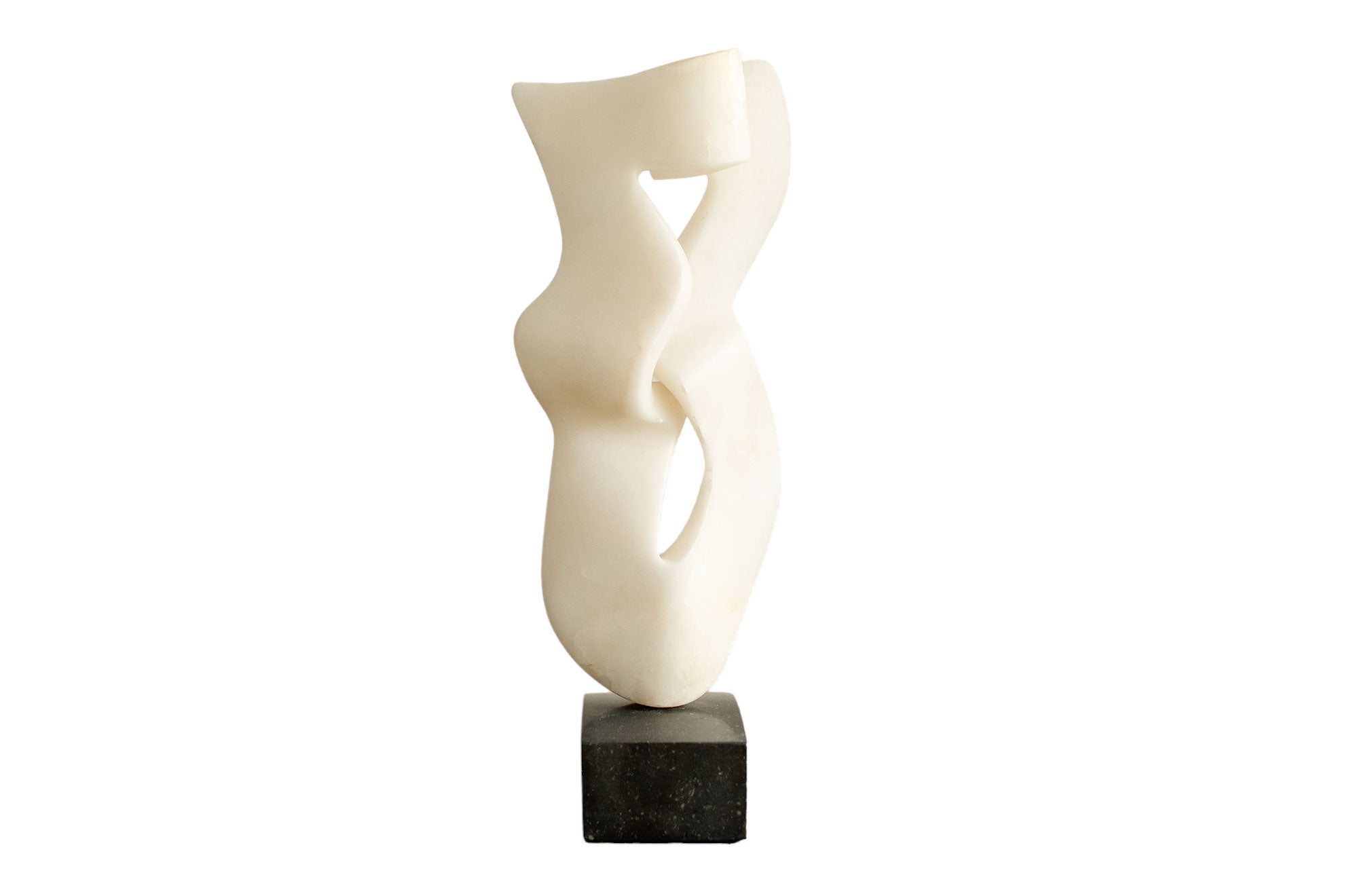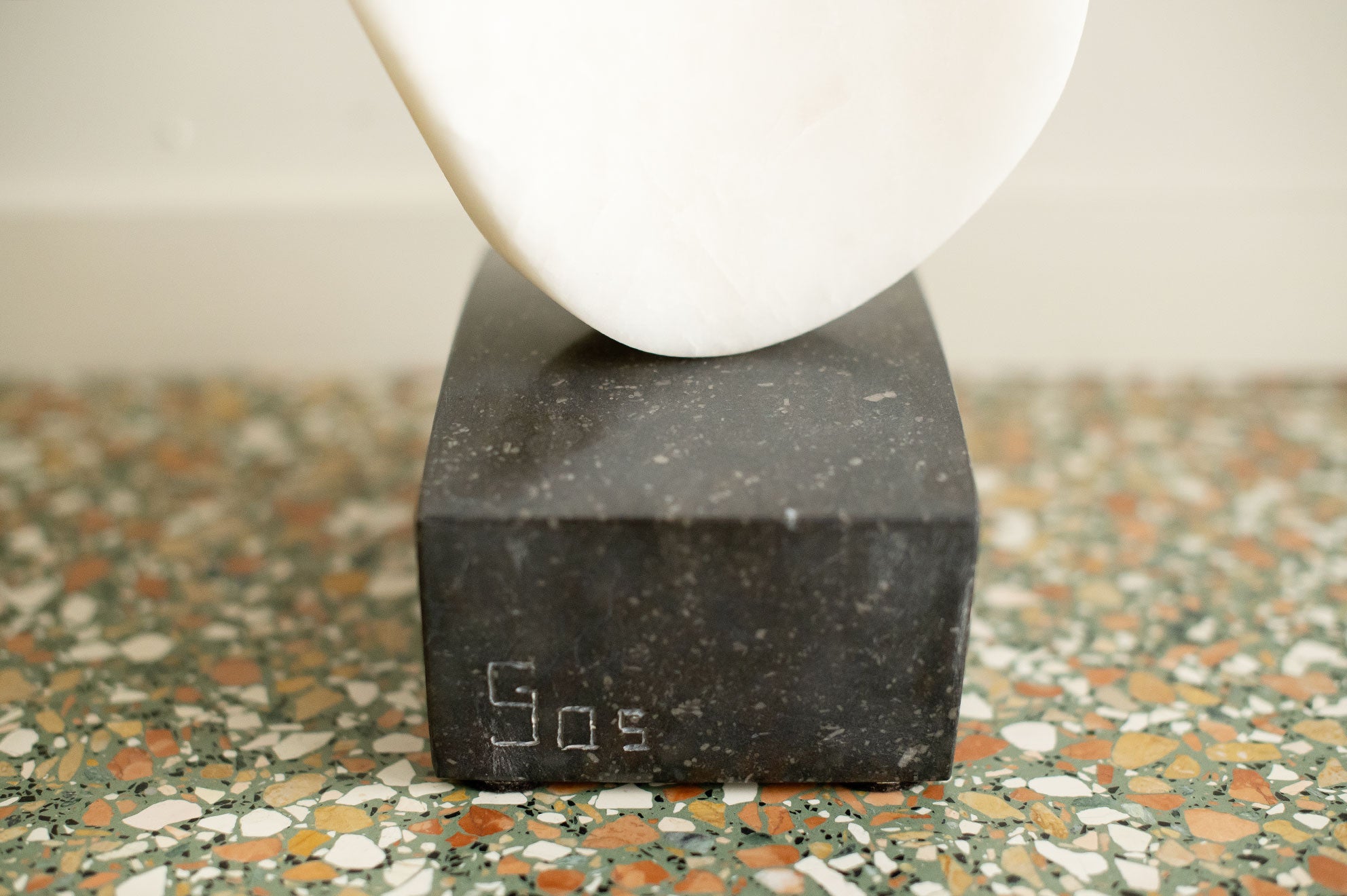 Ajoutez instantanément du style à votre maison avec cette statue blanche dynamique et accrocheuse. Fabriqués en albâtre blanc sur un socle en marbre gris contrastant, les tourbillons complexes du design créent une sensation de mouvement qui ajoutera du style à n'importe quelle pièce. Signée « G.Jos », cette pièce deviendra à coup sûr un élément intemporel de votre intérieur.