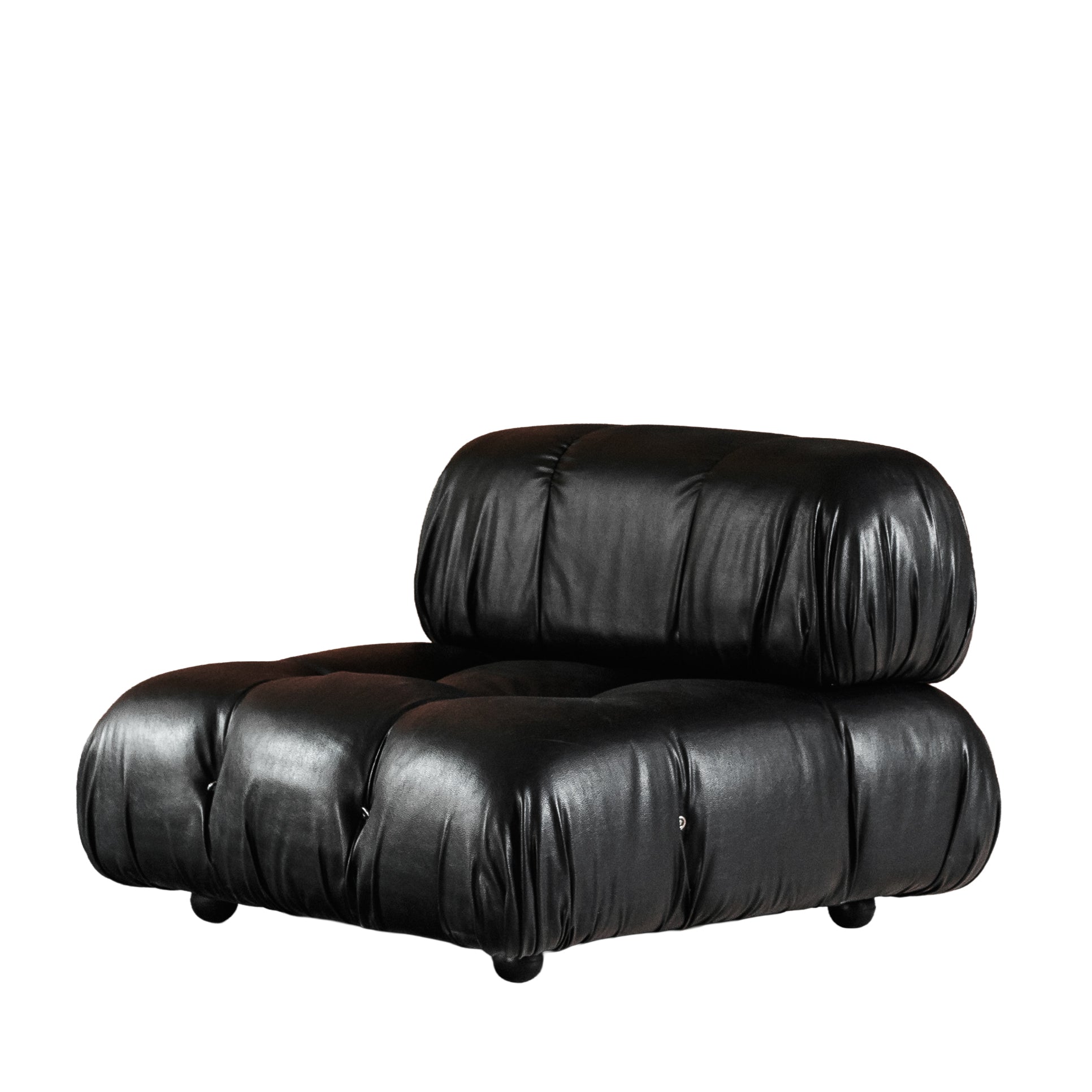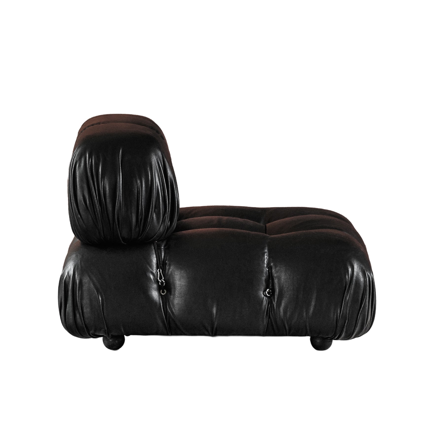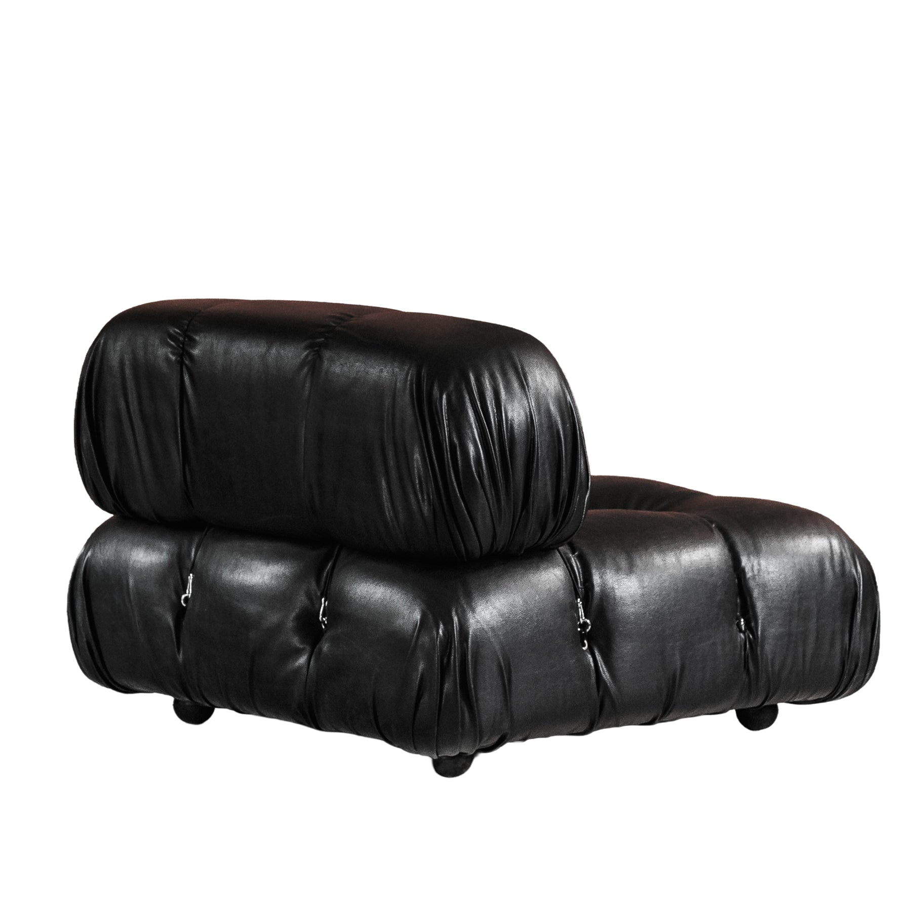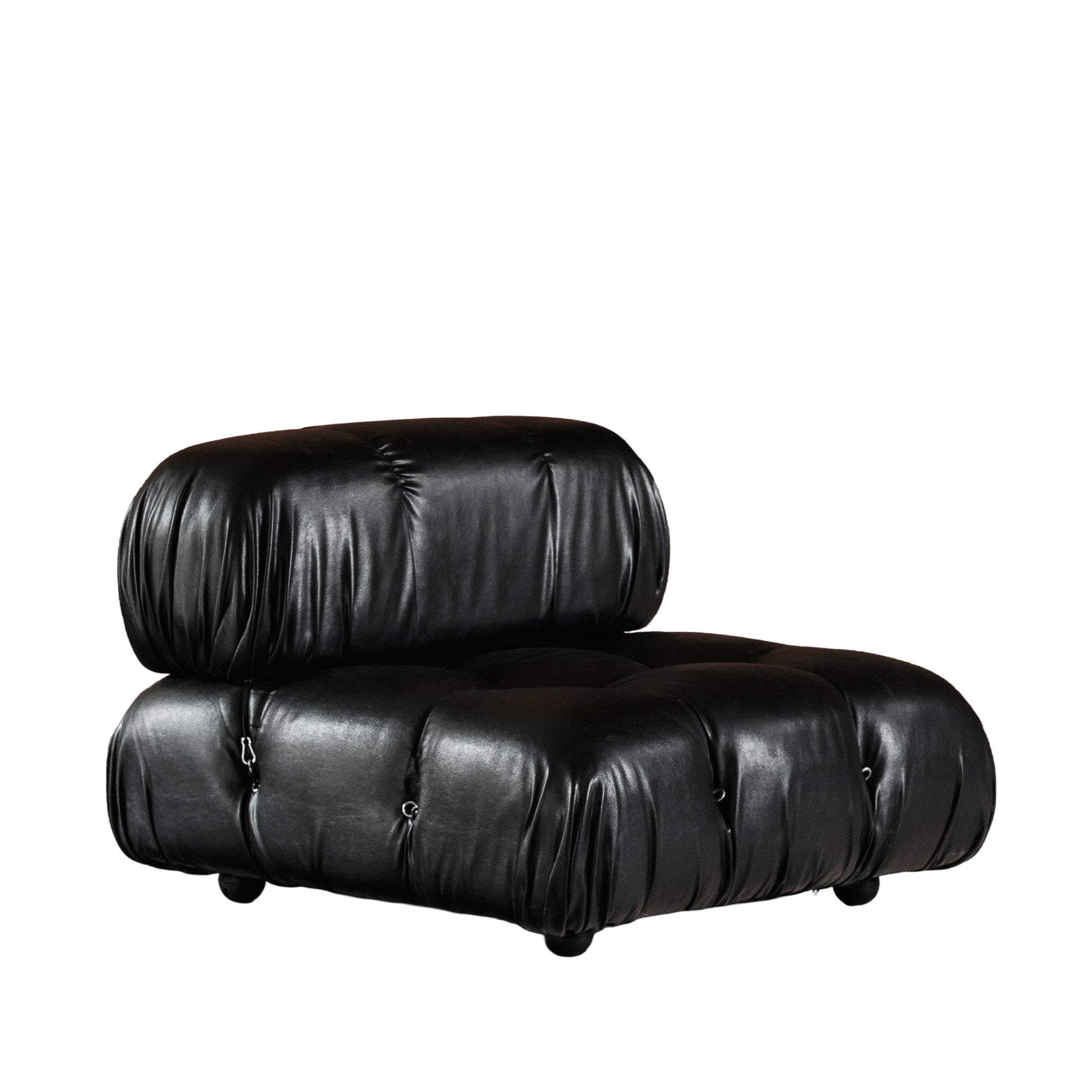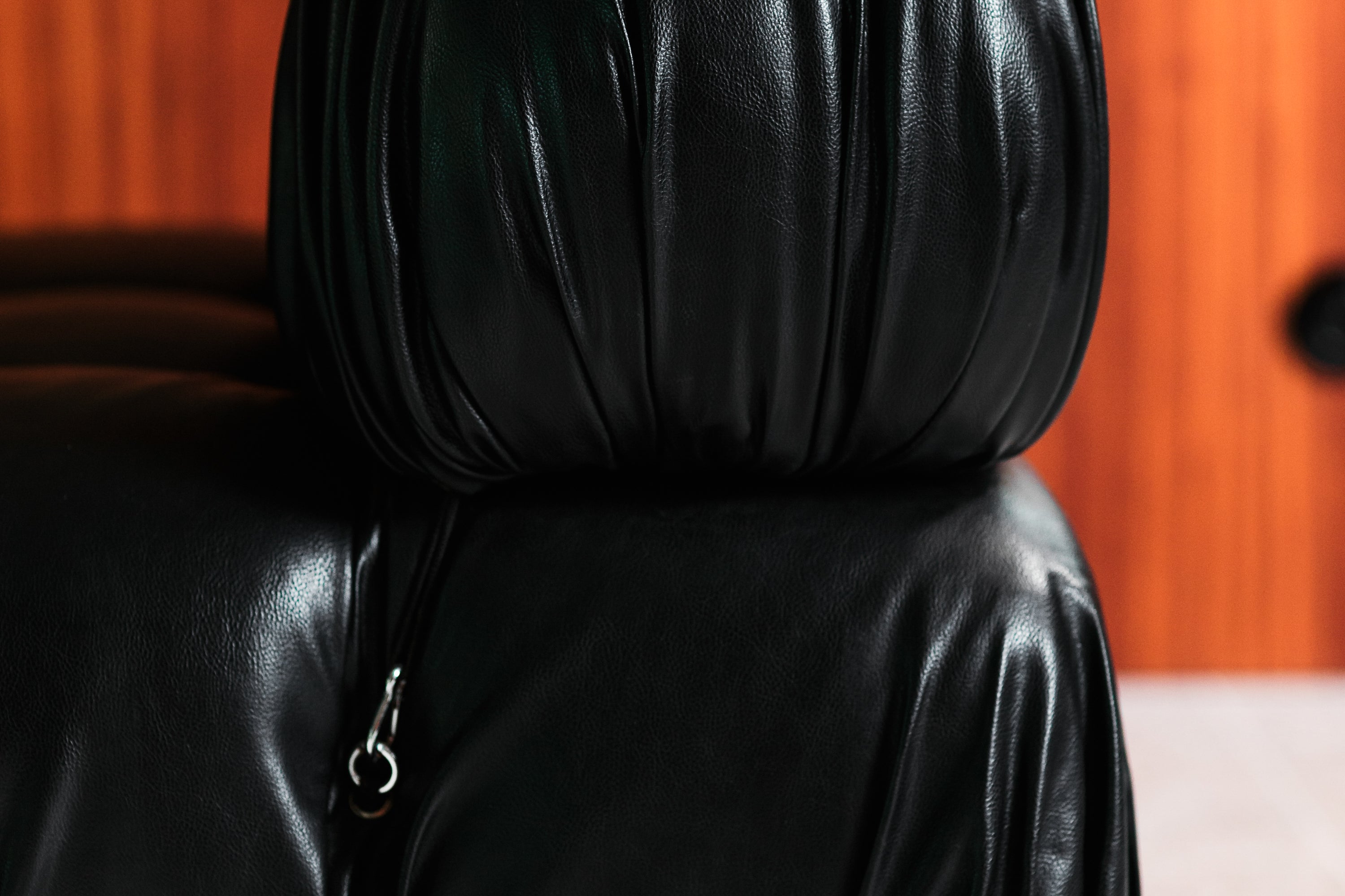 Cet ensemble particulier comprend trois modules CM96C individuels, recouverts de cuir noir de haute qualité, ce qui lui confère un aspect intemporel et sophistiqué. Le cuir doux et capitonné ainsi que les coussins épais offrent un confort exceptionnel, tandis que le système intelligent de crochets et d'anneaux vous permet d'arranger les éléments comme vous le souhaitez. Ce qui en fait un choix idéal pour les intérieurs classiques et contemporains.