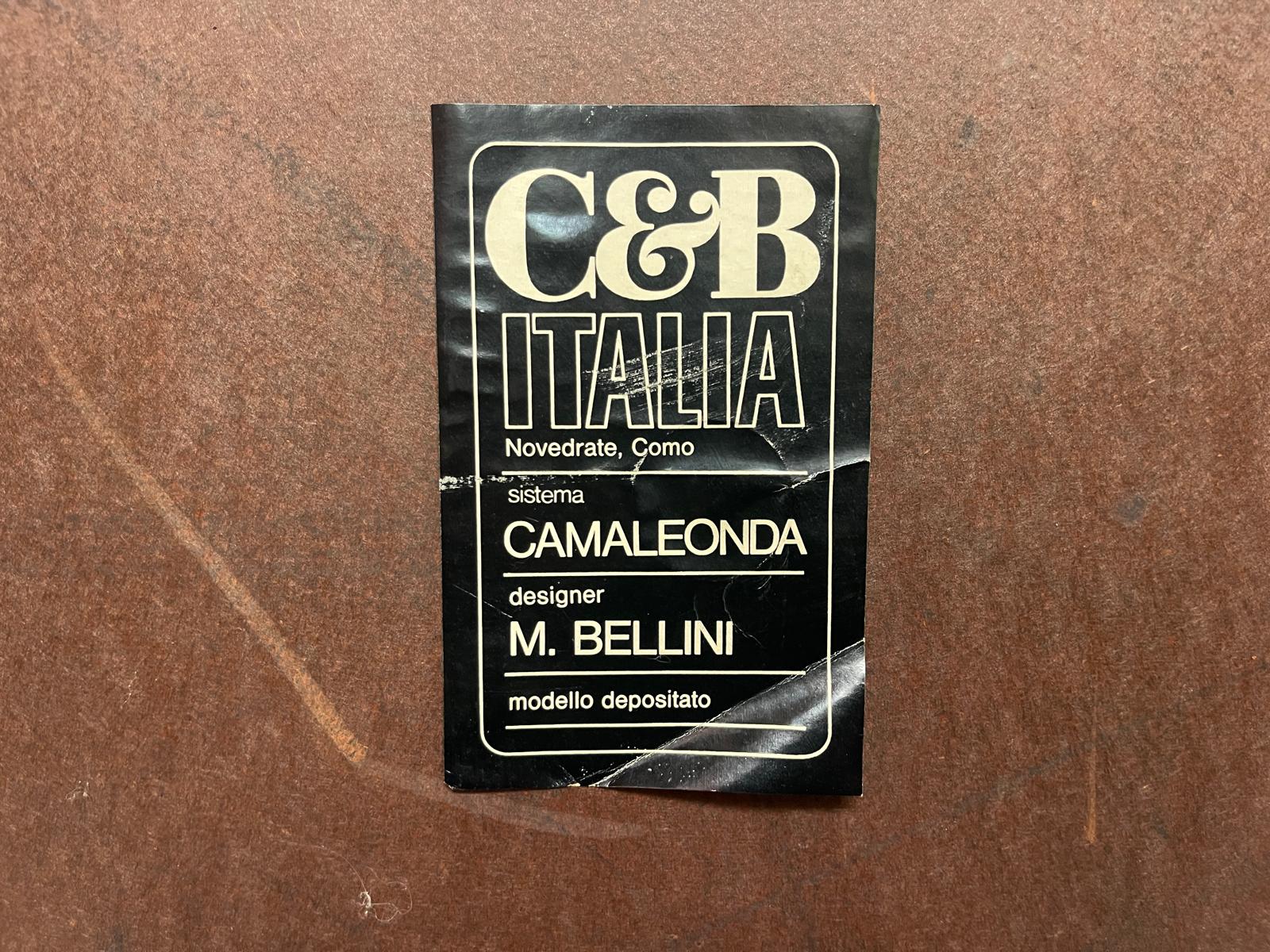 Le nom « Camaleonda » est une fusion de deux mots italiens : camaleonte (caméléon) et onda (onde), reflétant le design modulaire hautement adaptable du canapé et sa forme fluide et sculpturale. L’étiquette du fabricant d’origine est toujours attachée sous l’œuvre, confirmant son origine et son authenticité.