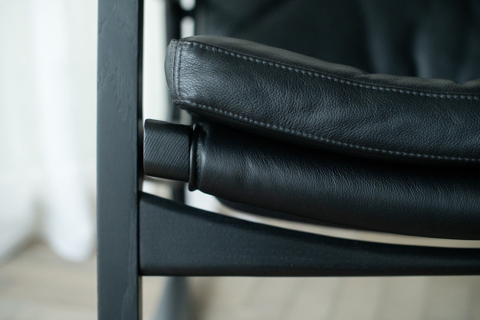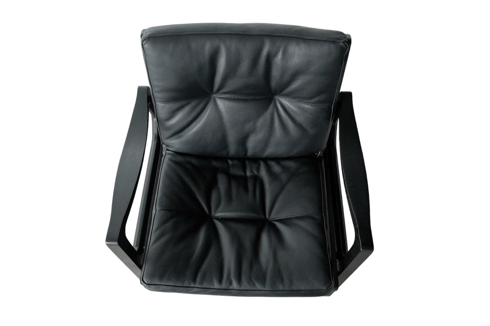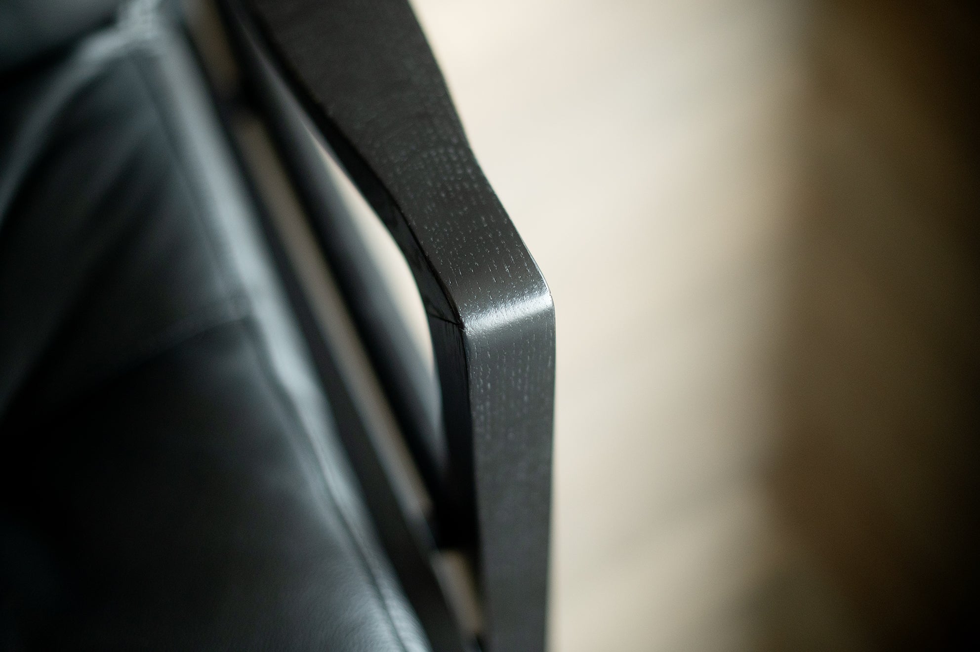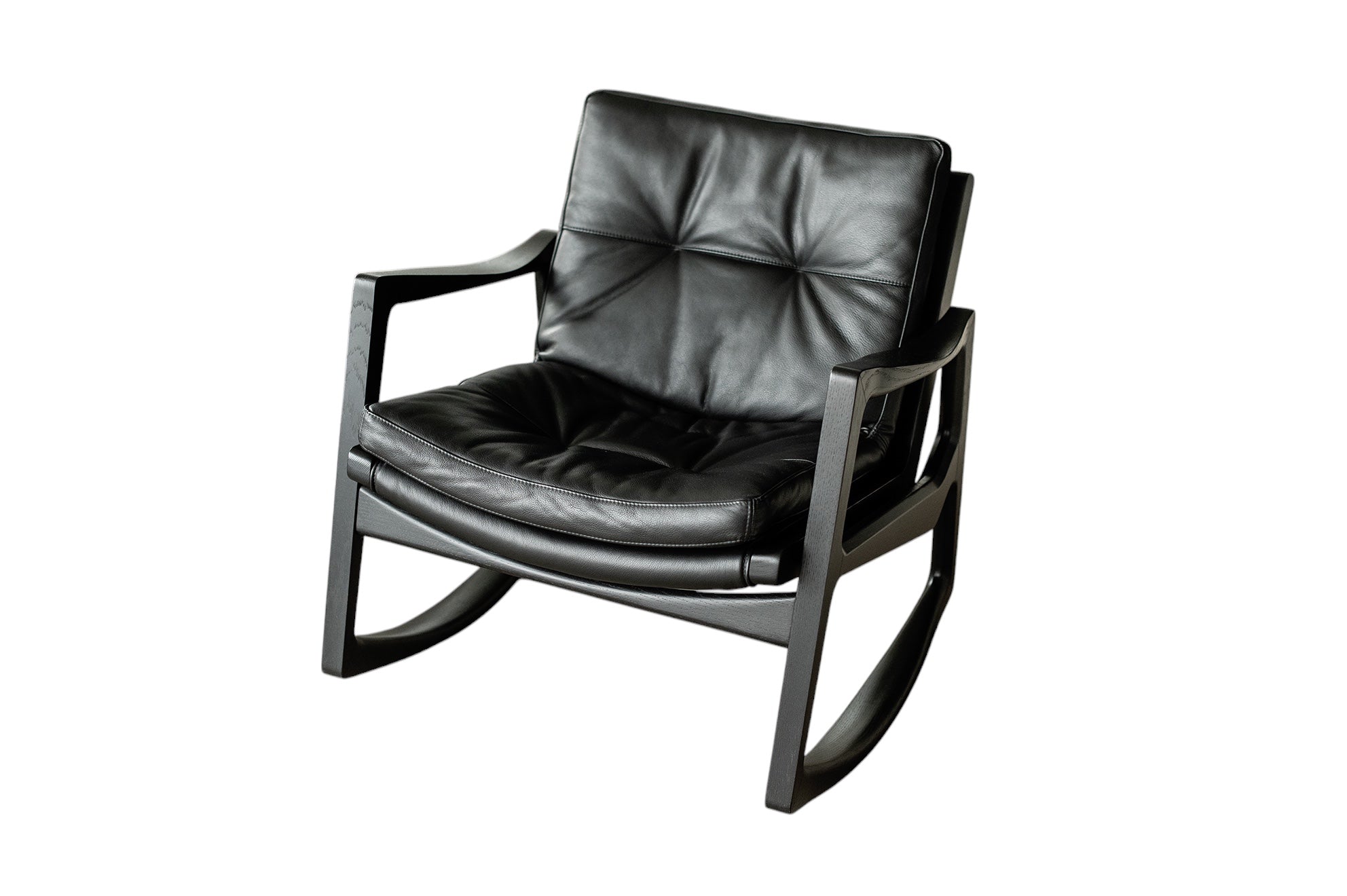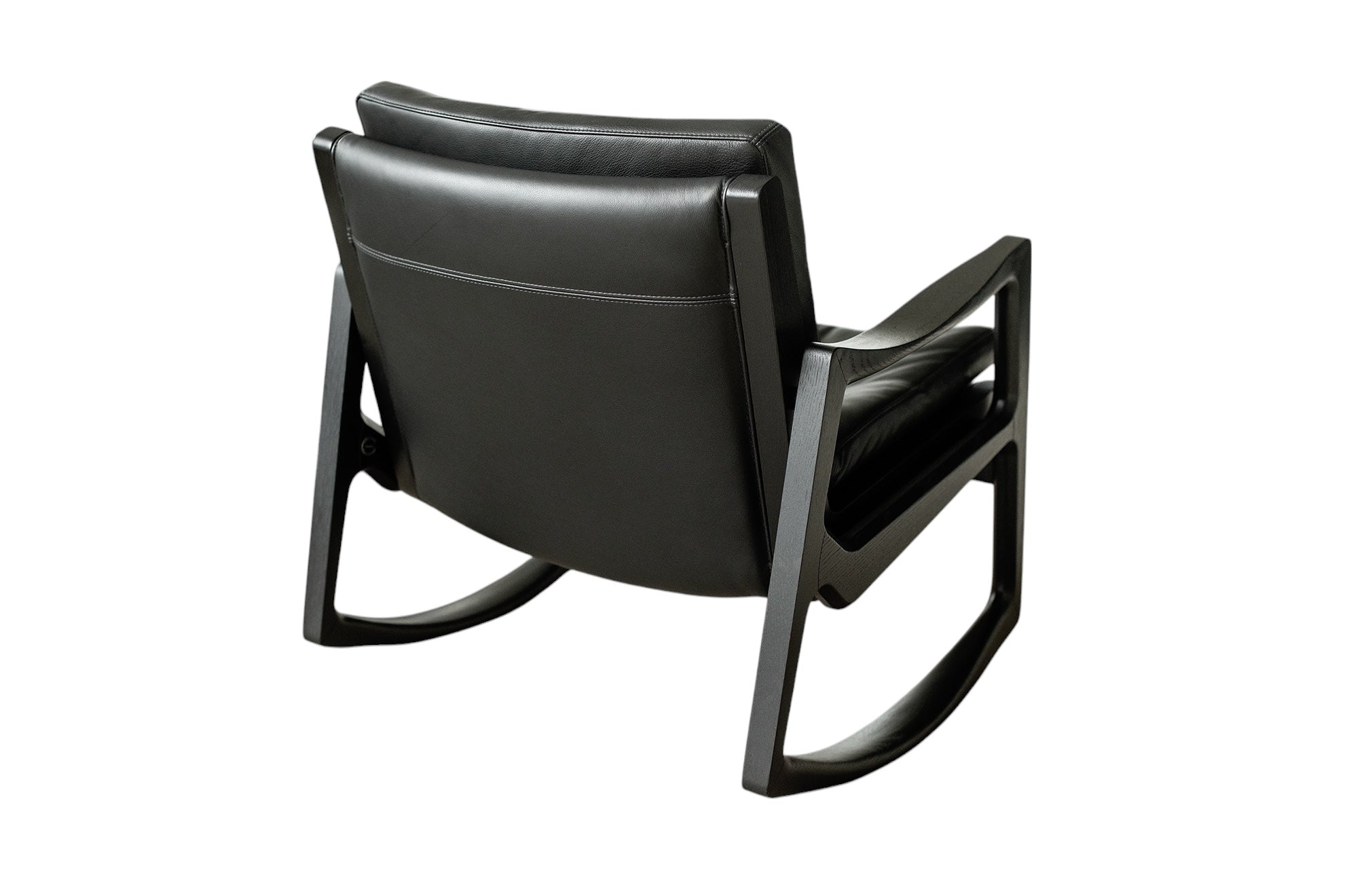 Met deze stoel combineert Almeida op meesterlijke wijze het comfort van een traditionele schommelstoel met de verfijning van een leren clubfauteuil. De strakke armleuningen van de stoel weerspiegelen de vloeiende lijnen van de schommelstoelen, wat een harmonieus ontwerp creëert dat evenwichtig en dynamisch aanvoelt.
