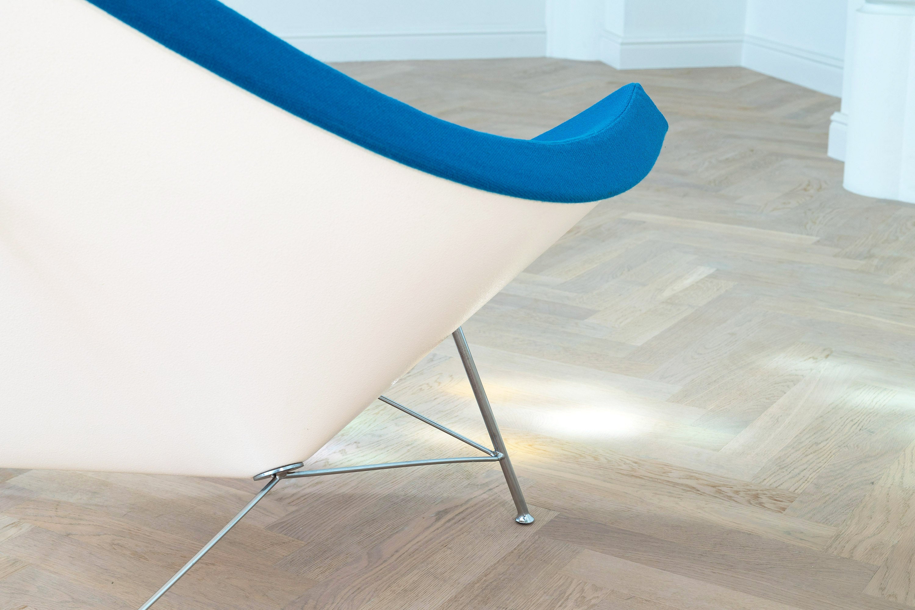 De Coconut Chair is een ware icoon van het Mid-century modern design, ontworpen in 1955 door de gerenommeerde Amerikaanse ontwerper George Nelson. Geïnspireerd door de vorm van een gebarsten kokosnootschil, is de uitnodigende en speelse vorm van de stoel zo comfortabel als visueel indrukwekkend. De brede, driehoekige zitting maakt diverse zitposities mogelijk en biedt uitzonderlijk comfort en bewegingsvrijheid.