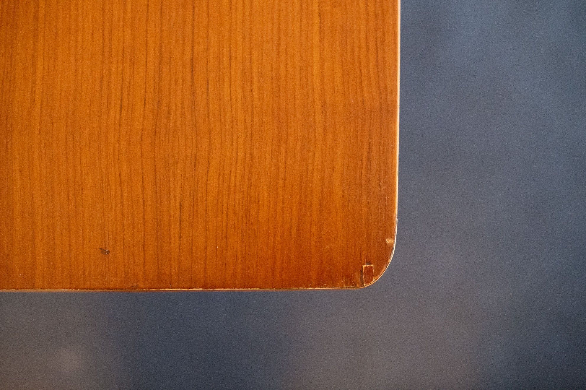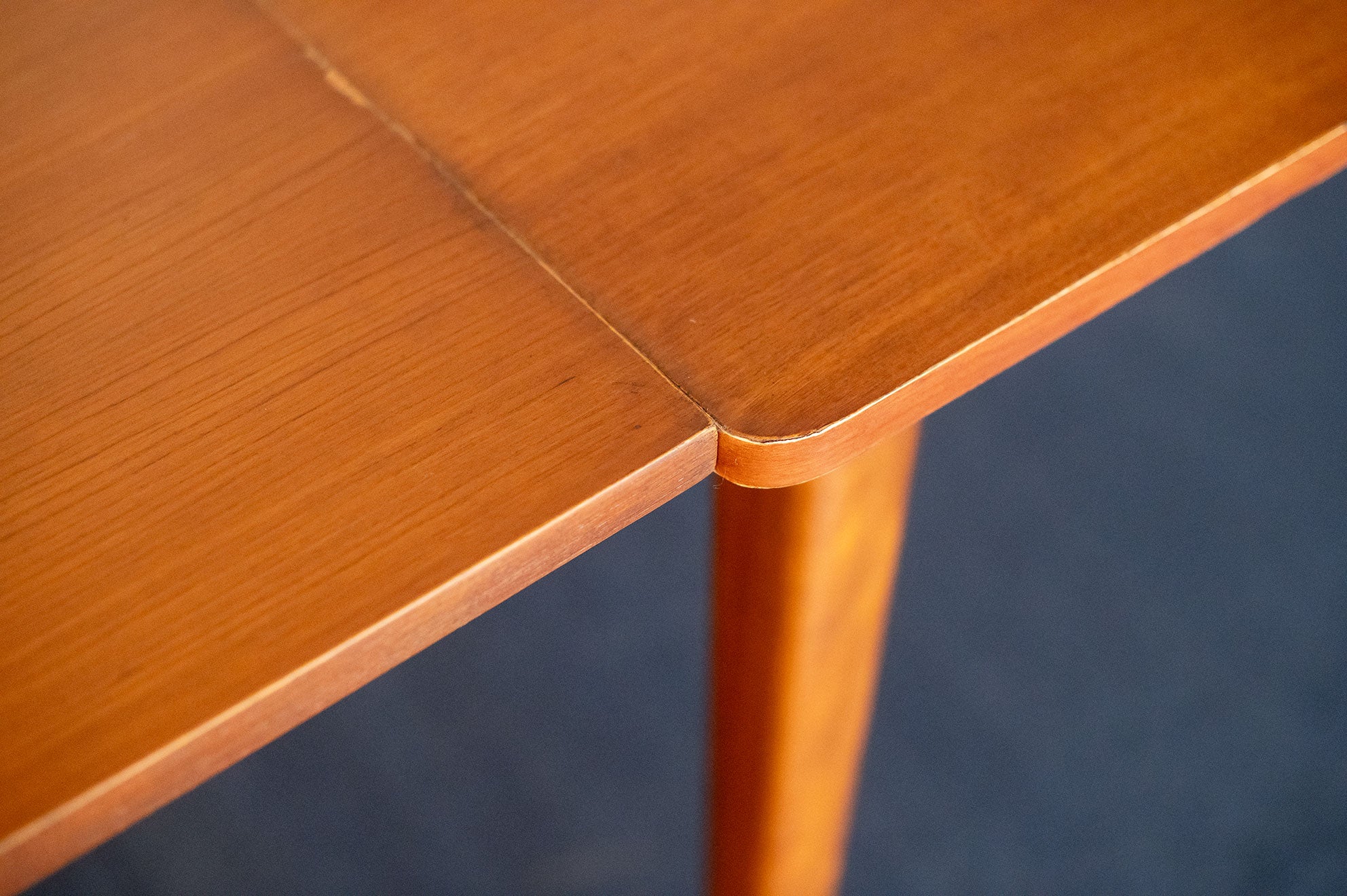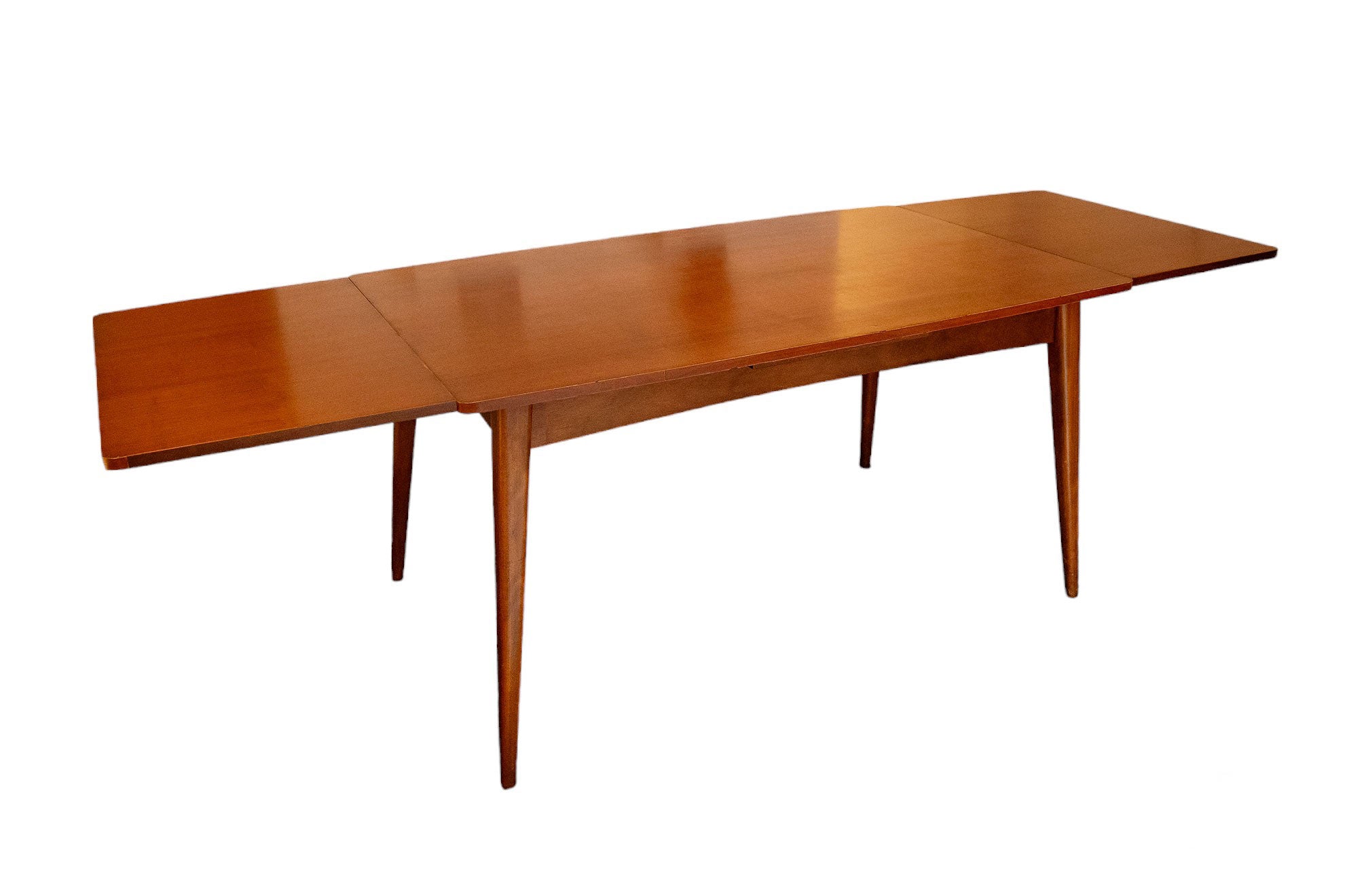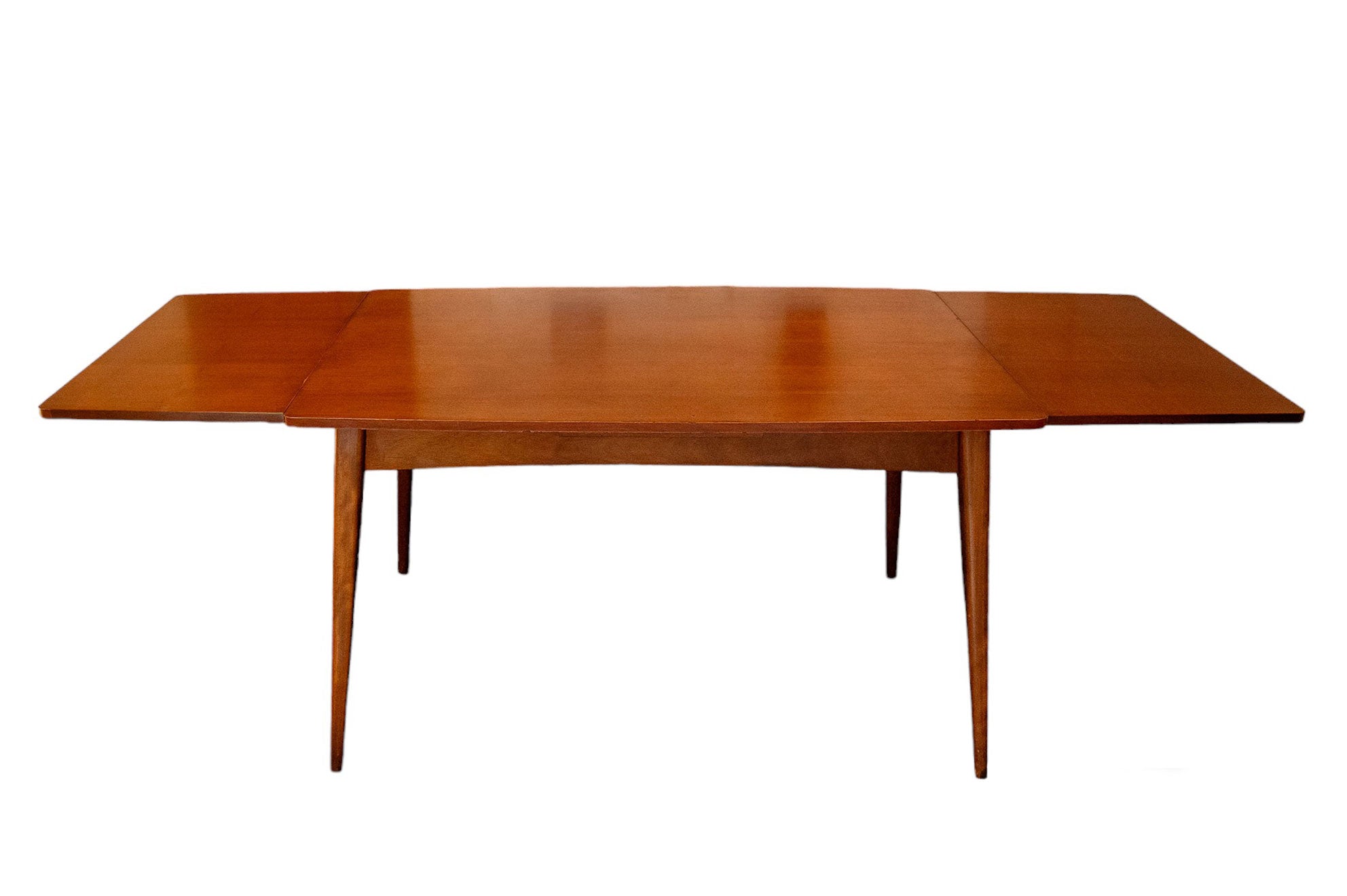 Deze uitschuifbare eettafel uit de jaren zestig is de perfecte keuze voor elke Louis Van Teeffelen-fan. Hiermee kunt u vier tot tien personen tegelijk ontvangen en brengt u de geneugten van de jaren zestig zeker naar uw eetkamer.