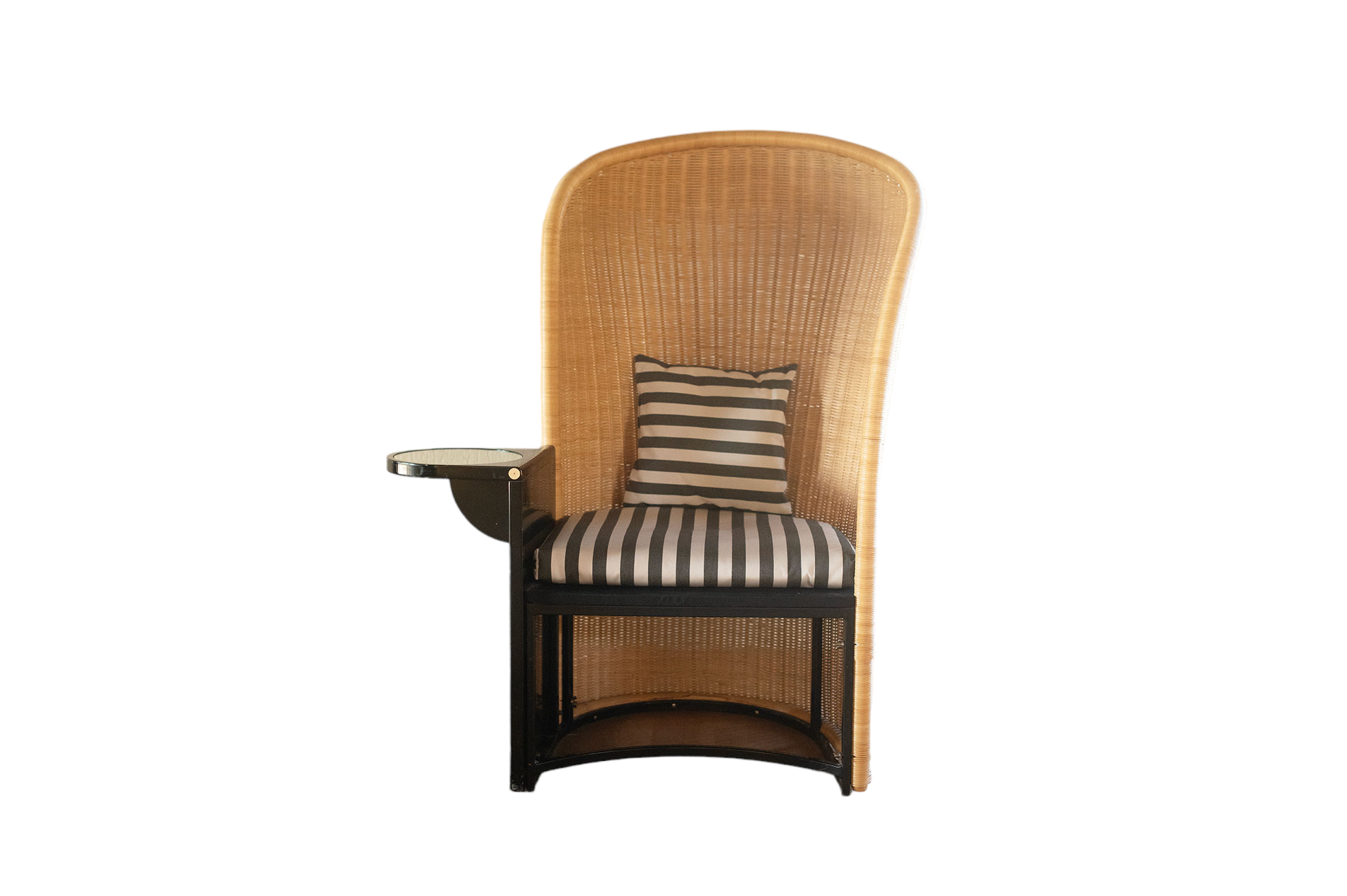Onze stijlvolle rotan zetel brengt een onvergetelijke sfeer in elke kamer. Het vintage rotanweefsel, de unieke spiegeltafel en het zachte kussen zorgen voor comfort en luxe. Een geweldige manier om van een huis een thuis te maken!