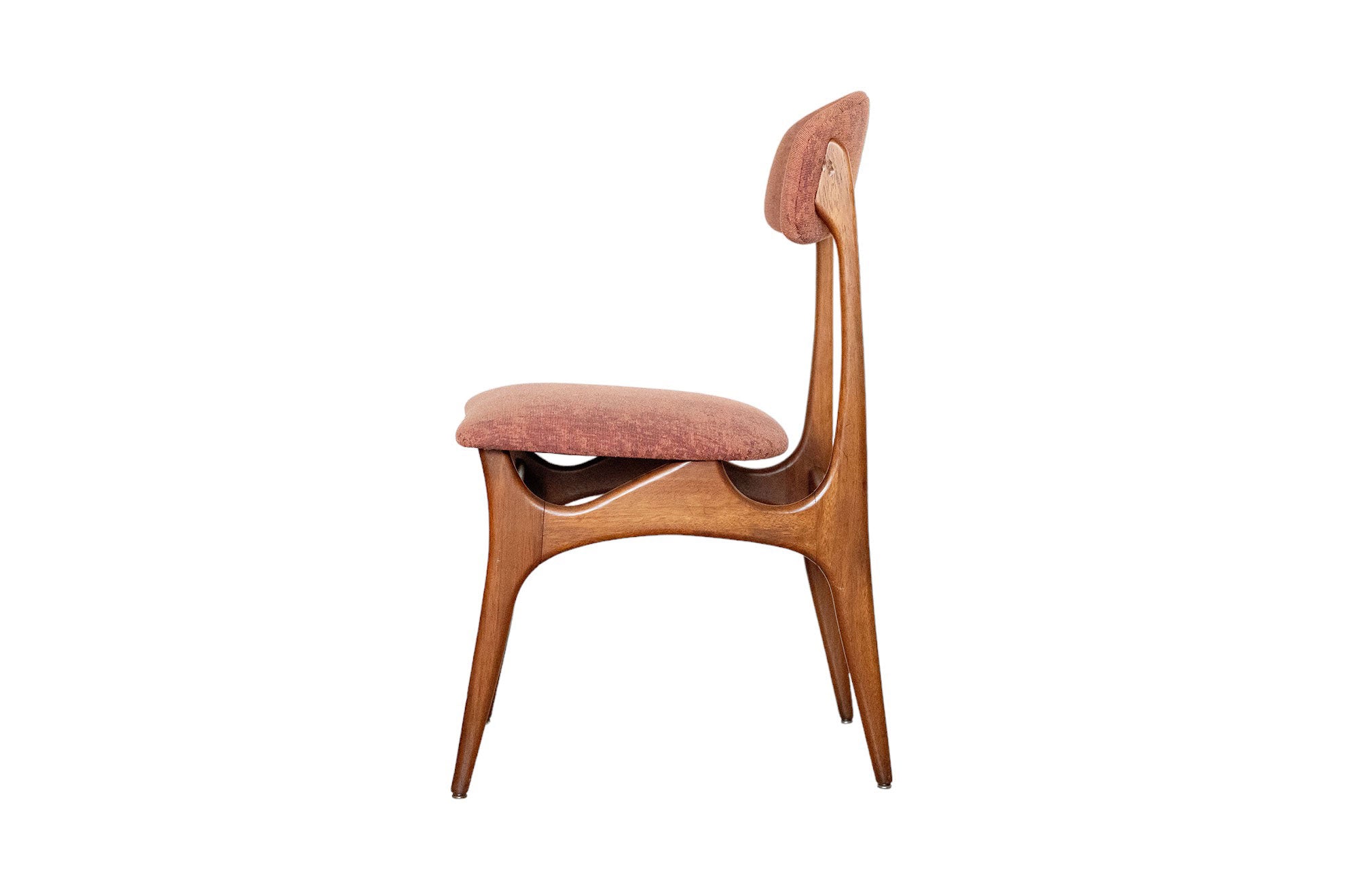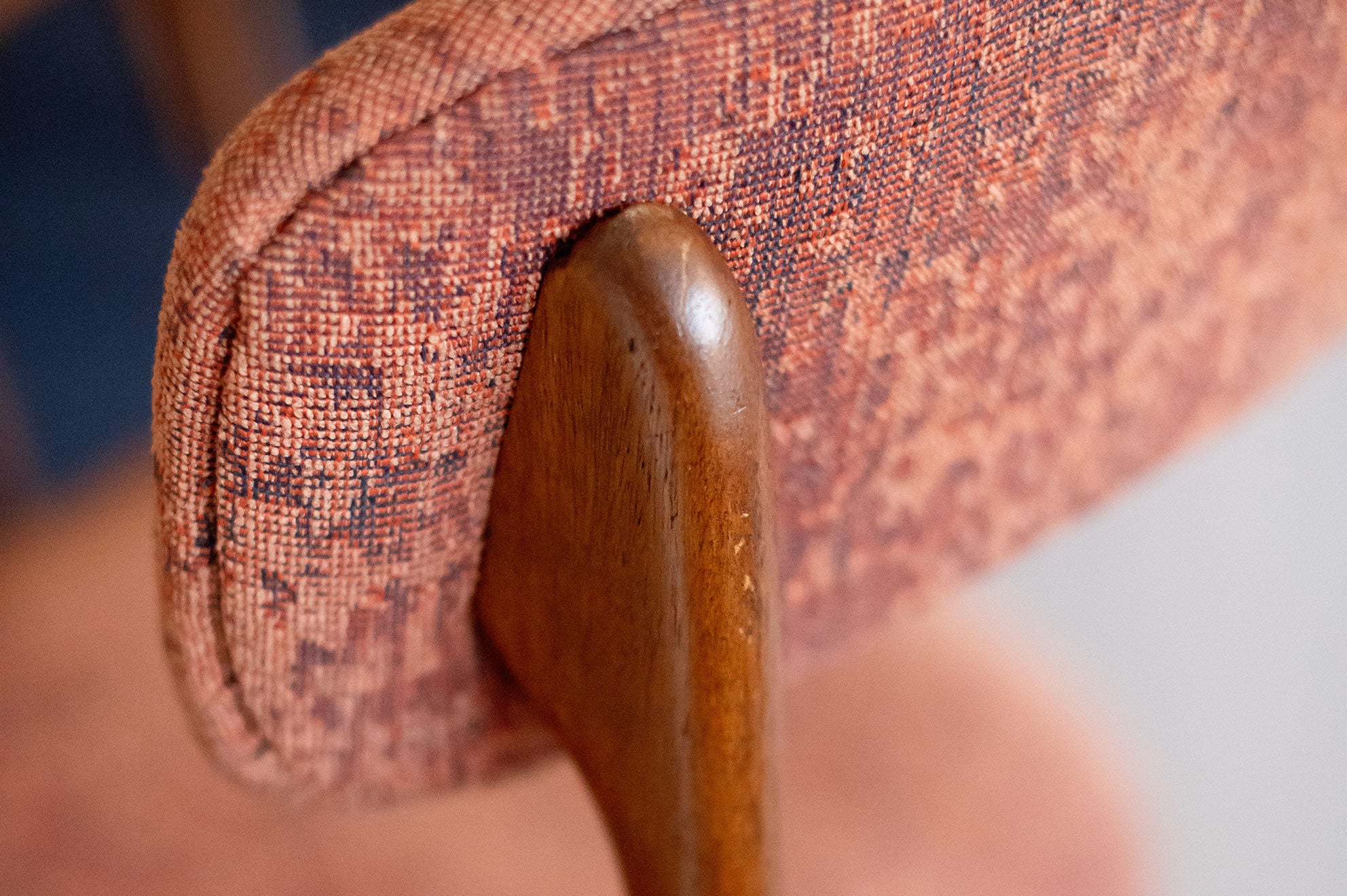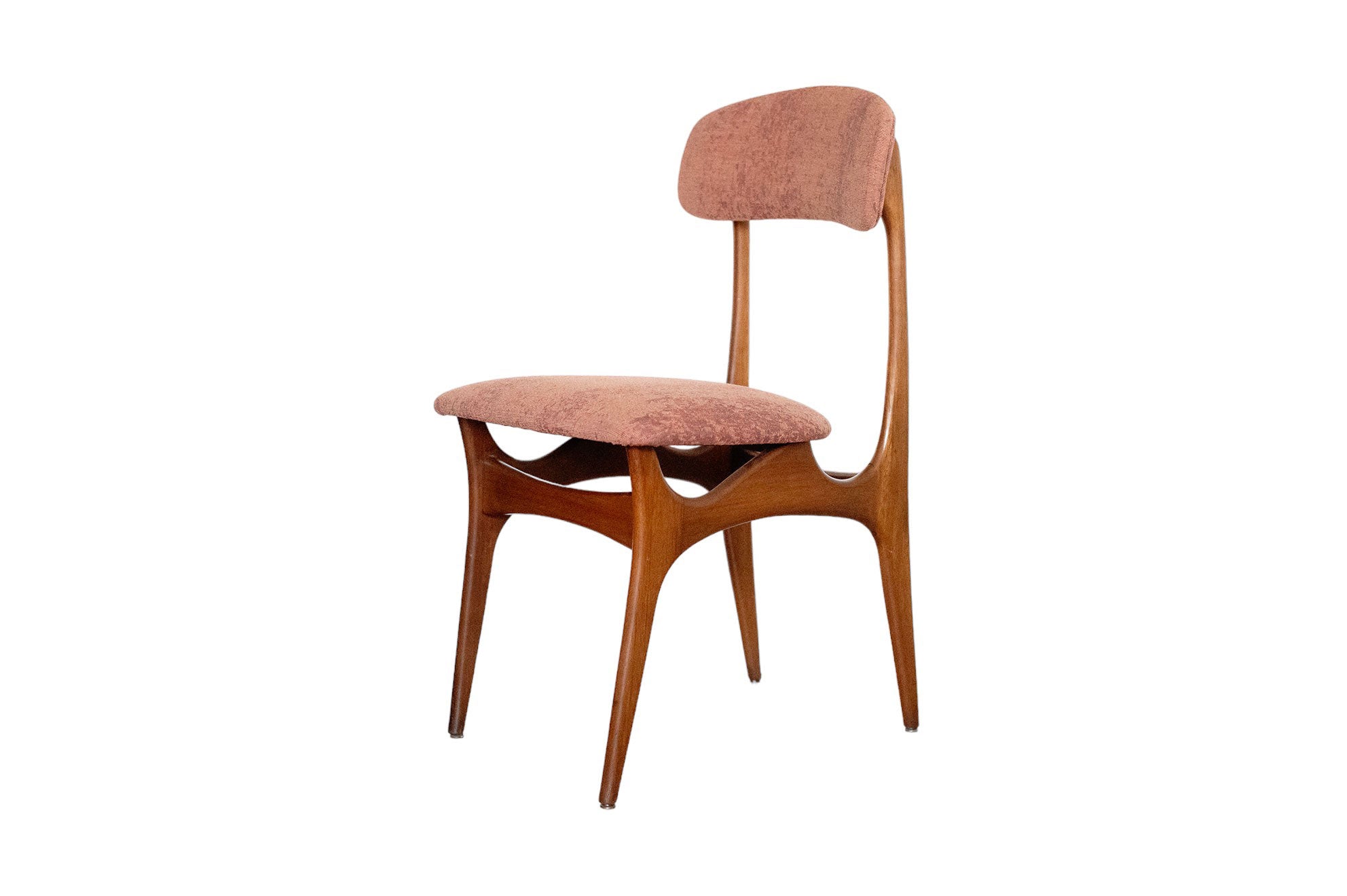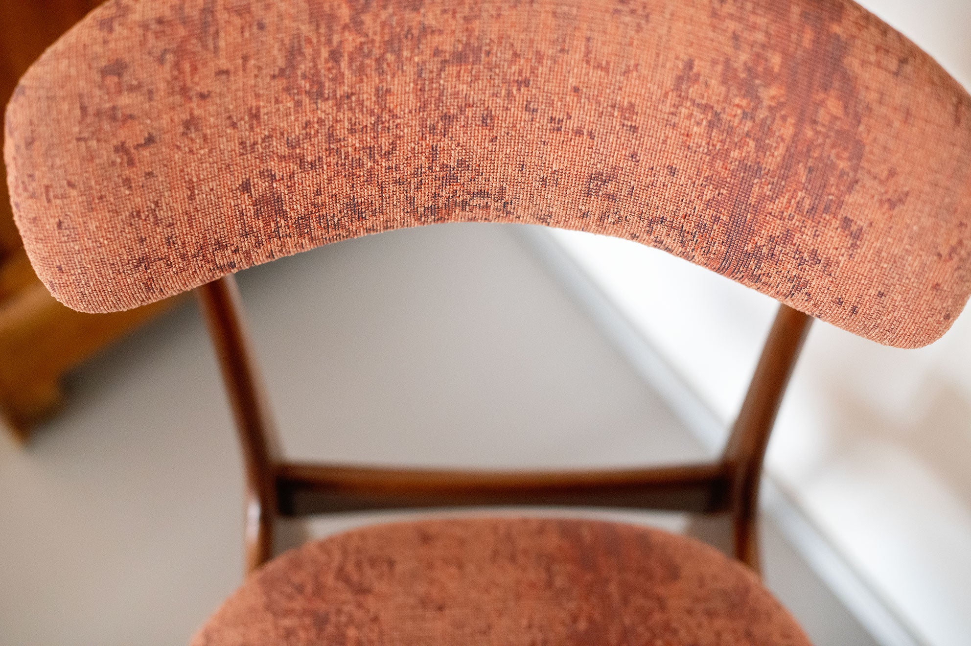 Verzamel rond de tafel met deze set van zes Louis Van Teeffelen eetkamerstoelen uit massief geolied teakhout. Deze tijdloze stoelen zijn onlangs in hun oorspronkelijke staat hersteld en bieden een tijdloos palet van verfijnde elegantie. De stof is nieuw en is ontworpen door Patricia Urquiola, de bekende Spaanse architecte en ontwerpster. Het heeft een levendige structuur en is gemaakt van uitstekende kwaliteit. Deze stoelen zijn voorzien van een knap design en zijn de perfecte keuze voor het hosten van uw volgende etentje.