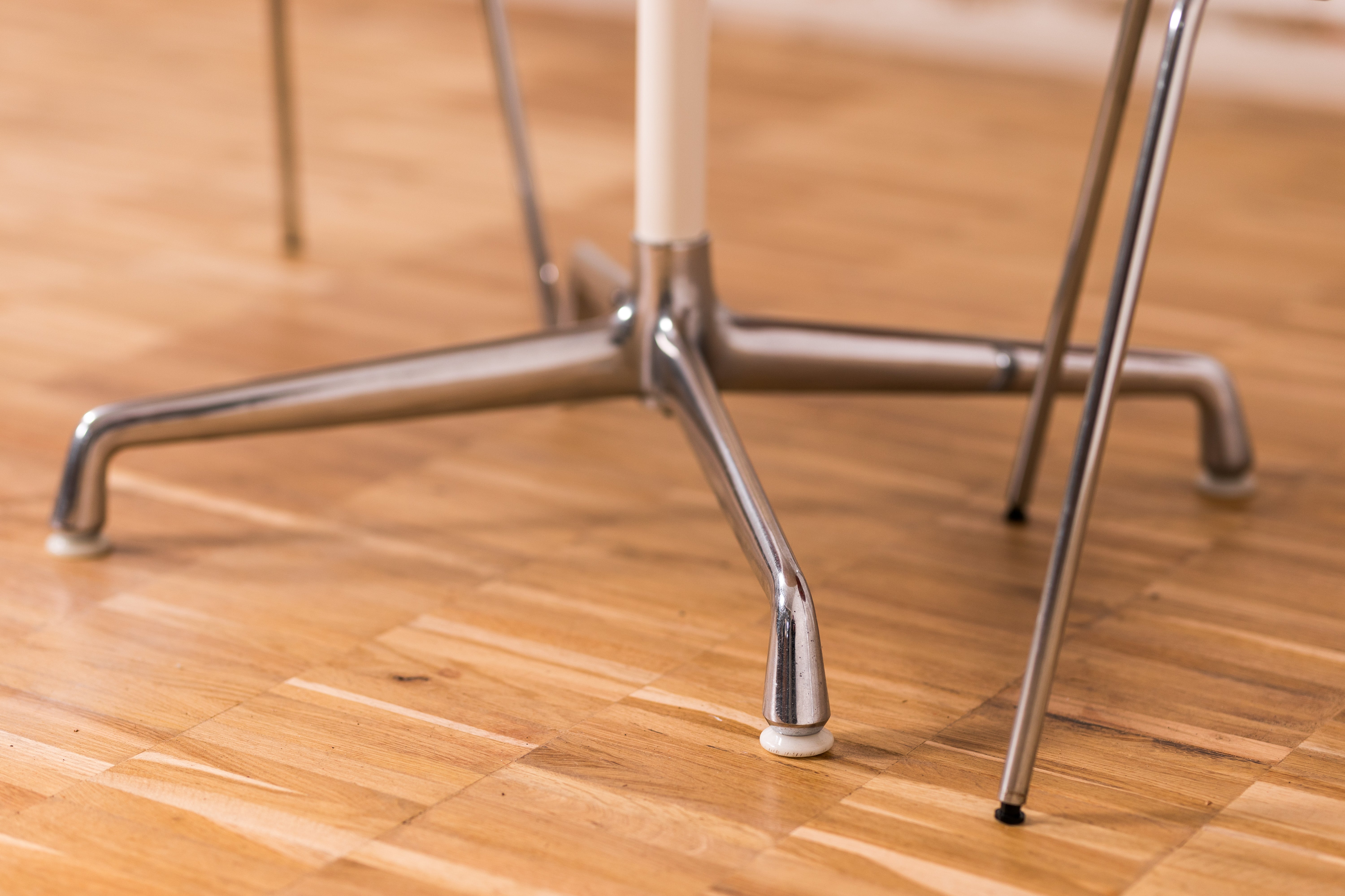 Charles en Ray Eames behoren tot de meest invloedrijke ontwerpers van de 20e eeuw, bekend om hun combinatie van innovatieve materialen met functionele elegantie. Deze tafel werd geproduceerd door Herman Miller tijdens de oorspronkelijke productieperiode, vóór de latere edities van Vitra, wat bijdraagt aan de authenticiteit en verzamelwaarde. Herman Miller Eames-ontwerpen worden wereldwijd geroemd om hun duurzaamheid, comfort en tijdloze esthetische aantrekkingskracht, waardoor deze tafel niet alleen een functioneel meubelstuk is, maar ook een ware designklassieker.