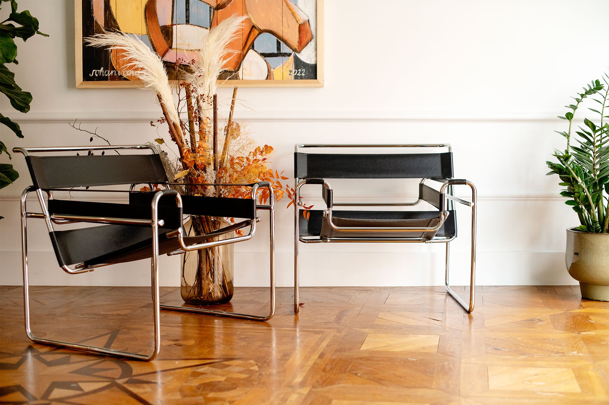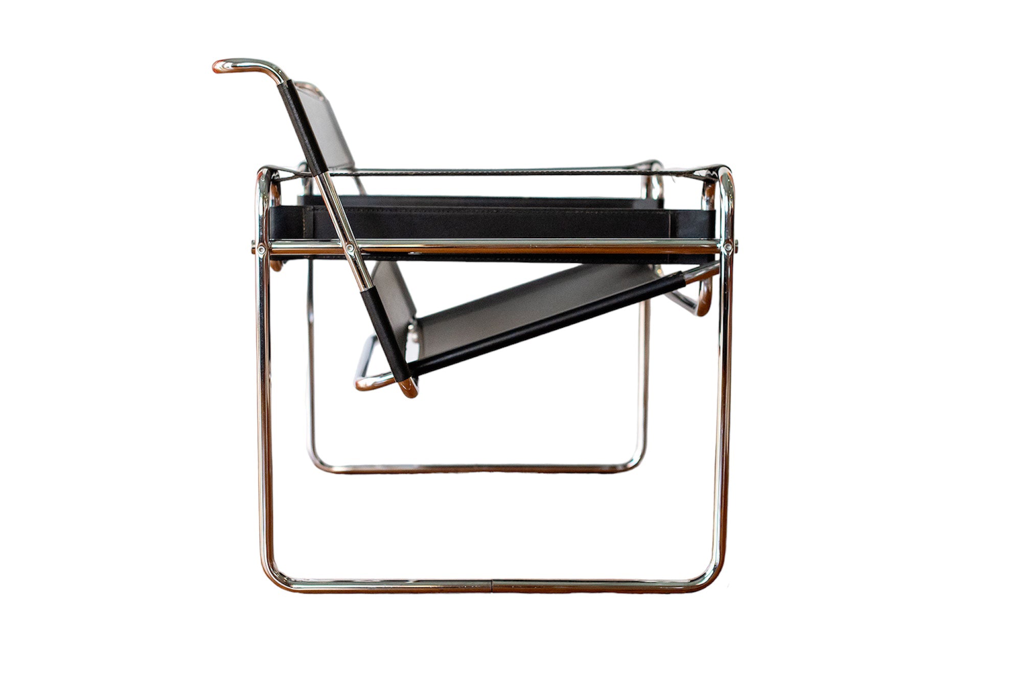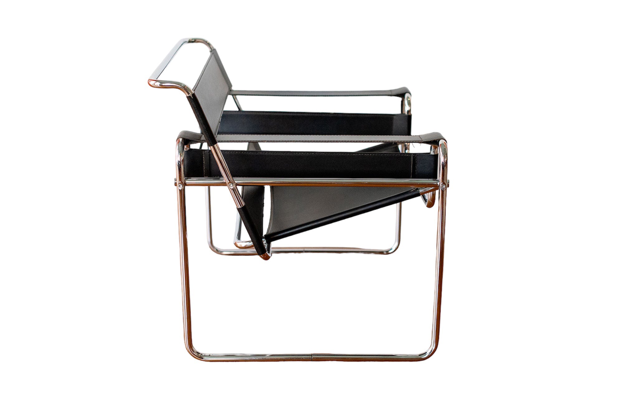 Experience a revolutionary furniture design with the iconic Wassily chair, created by Marcel Breuer during his time at the Bauhaus. Inspired by the frame of a bicycle and constructed with minimalistic lines and planes, this club chair is the perfect blend of timeless design and modern beauty. Feel the history of the movement with every sit. The price includes two chairs.