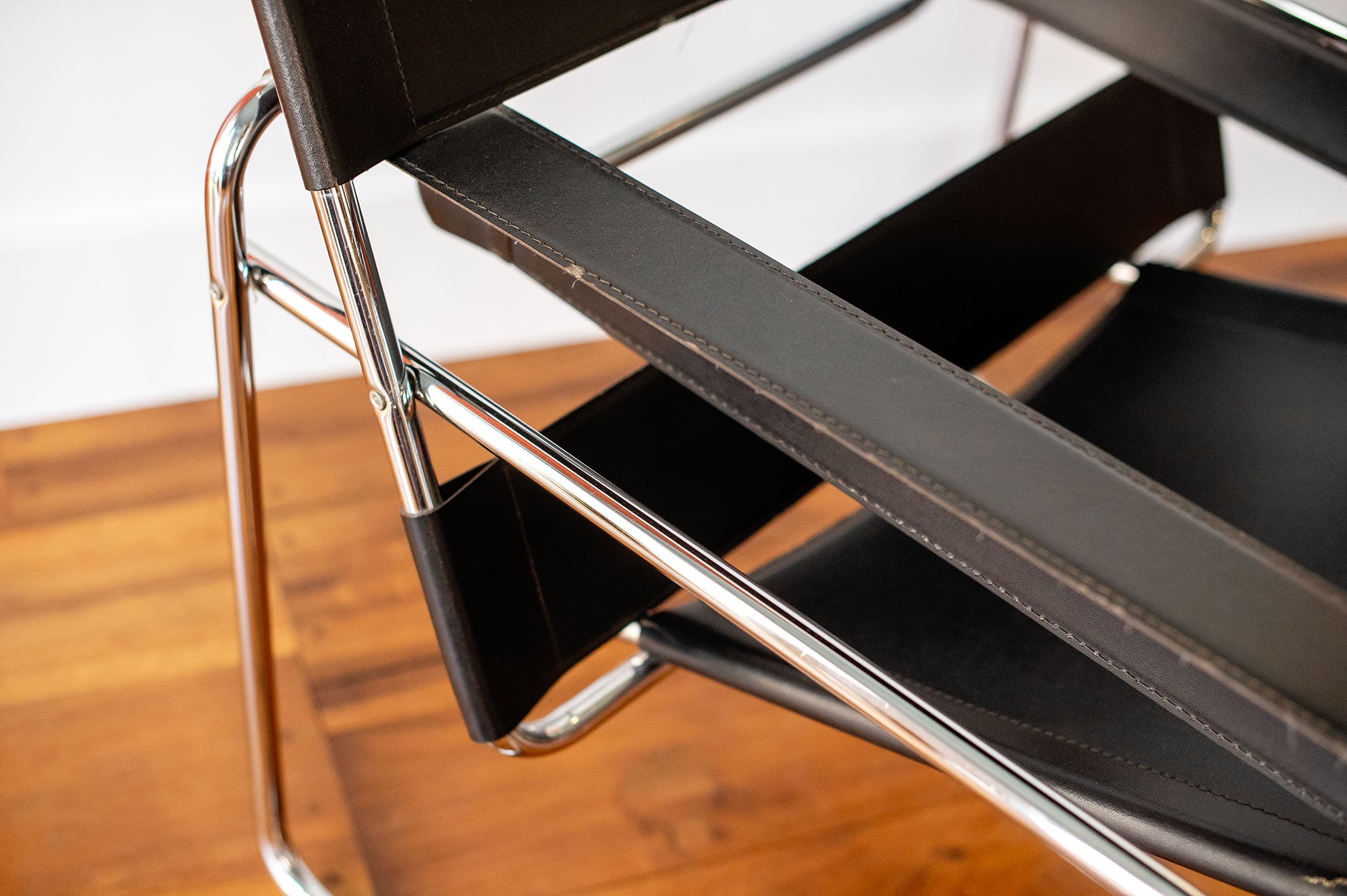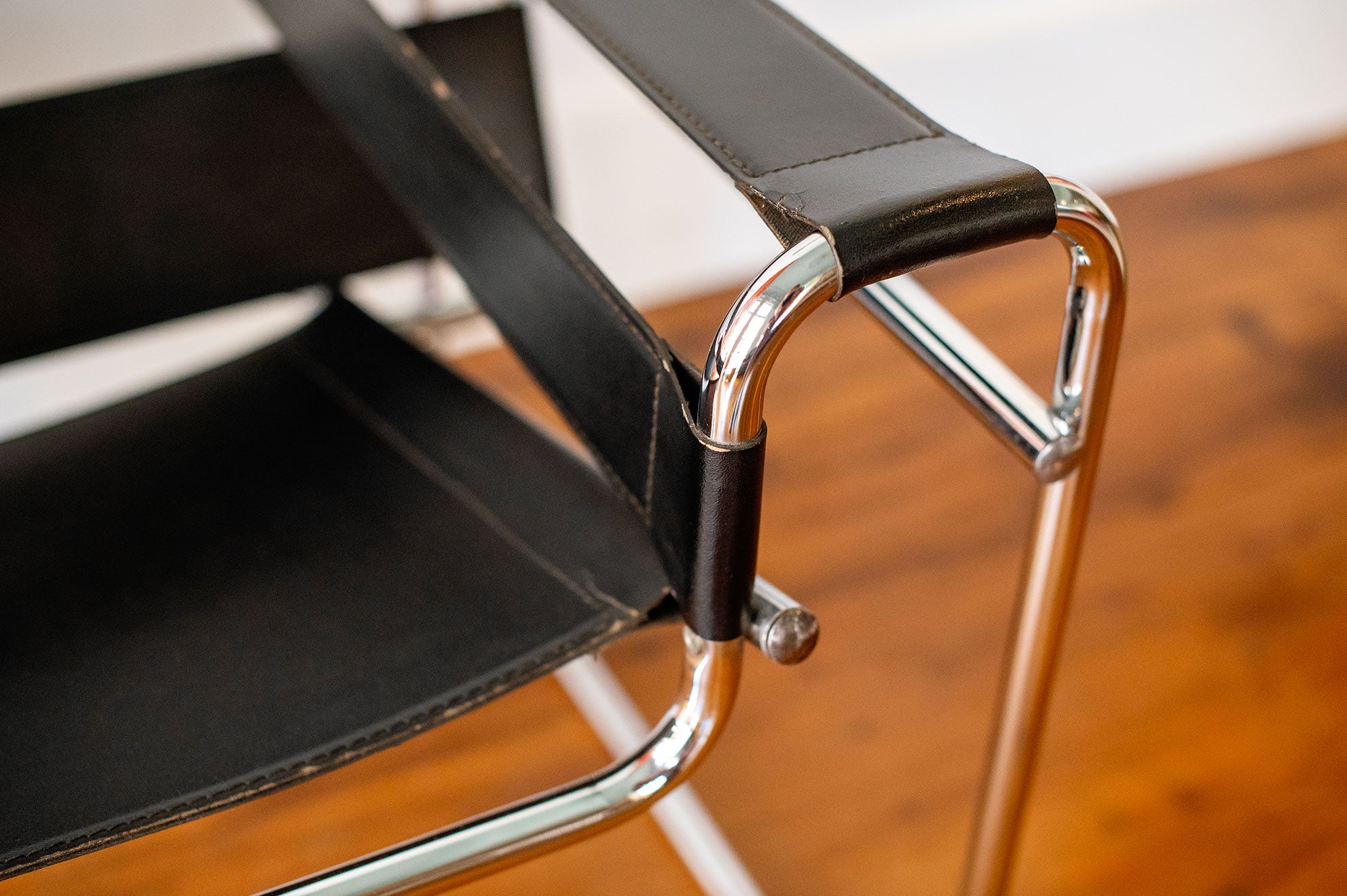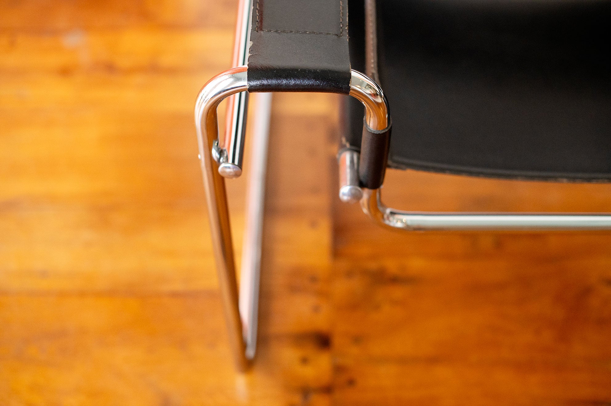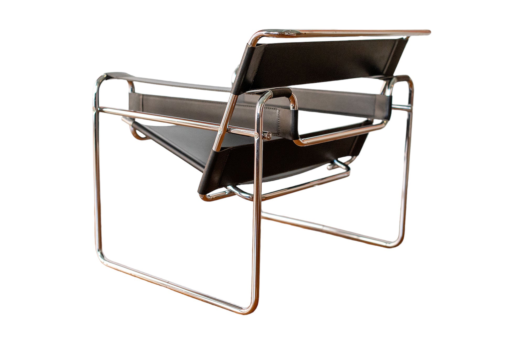 Experience a revolutionary furniture design with the iconic Wassily chair, created by Marcel Breuer during his time at the Bauhaus. Inspired by the frame of a bicycle and constructed with minimalistic lines and planes, this club chair is the perfect blend of timeless design and modern beauty. Feel the history of the movement with every sit. The price includes two chairs.