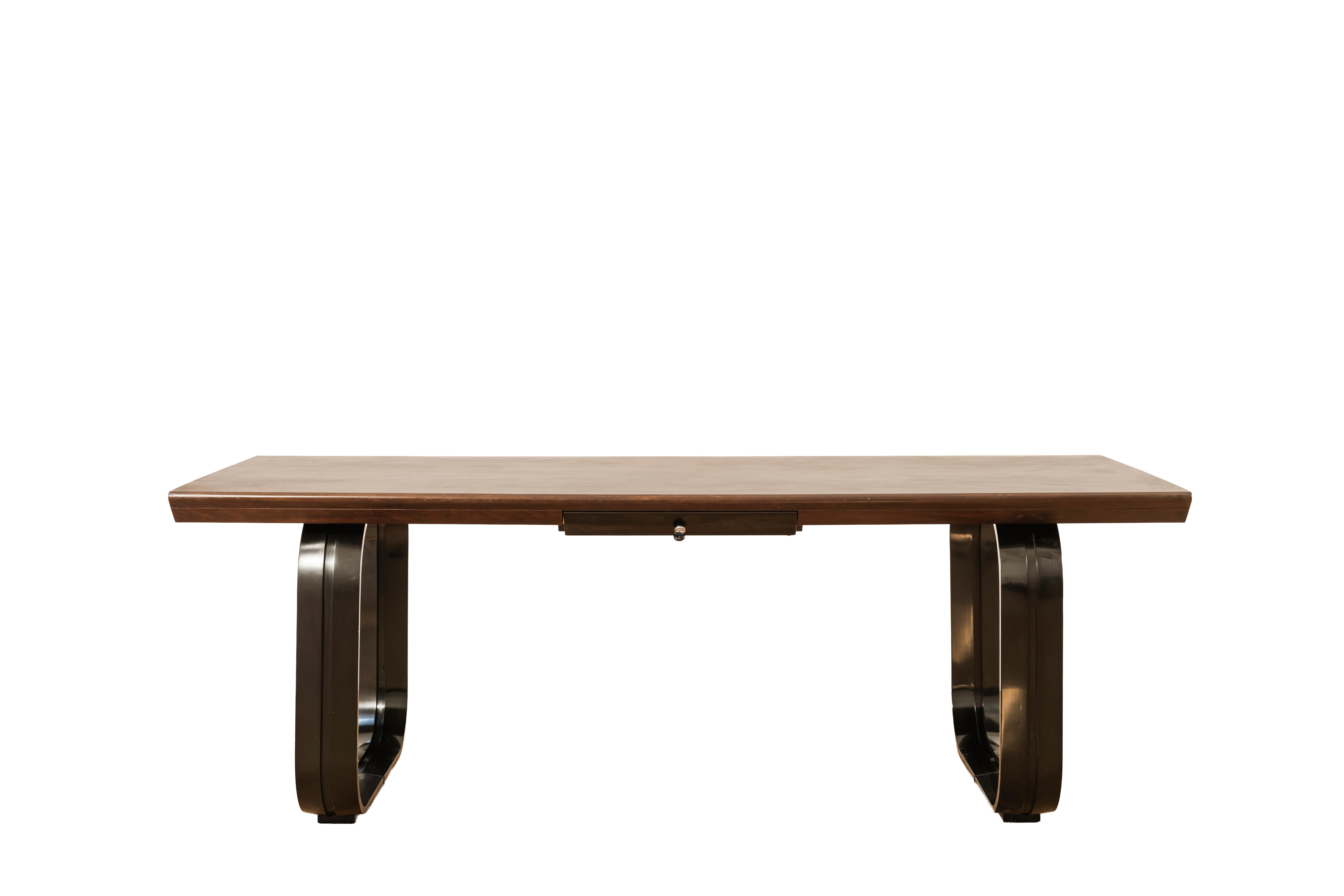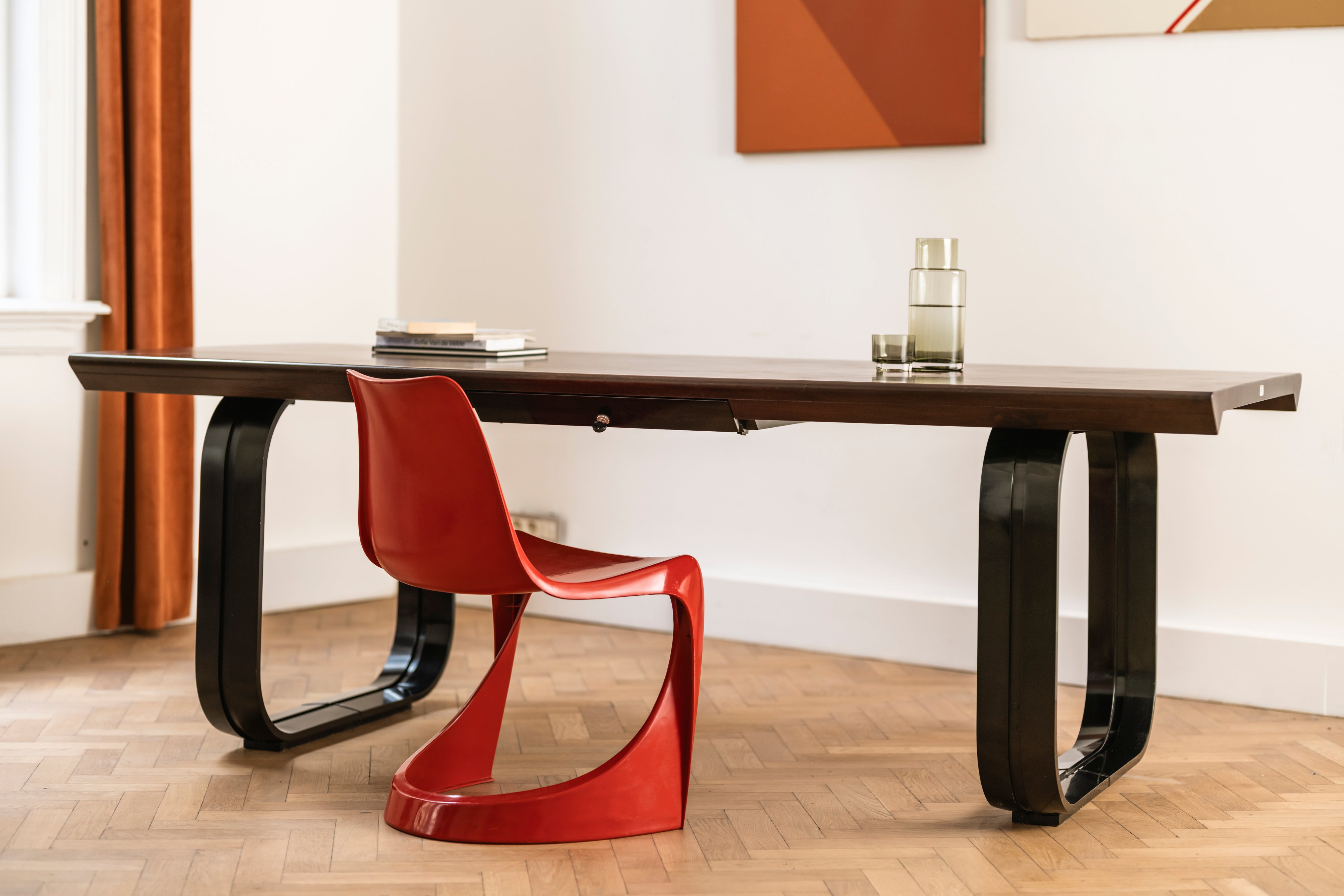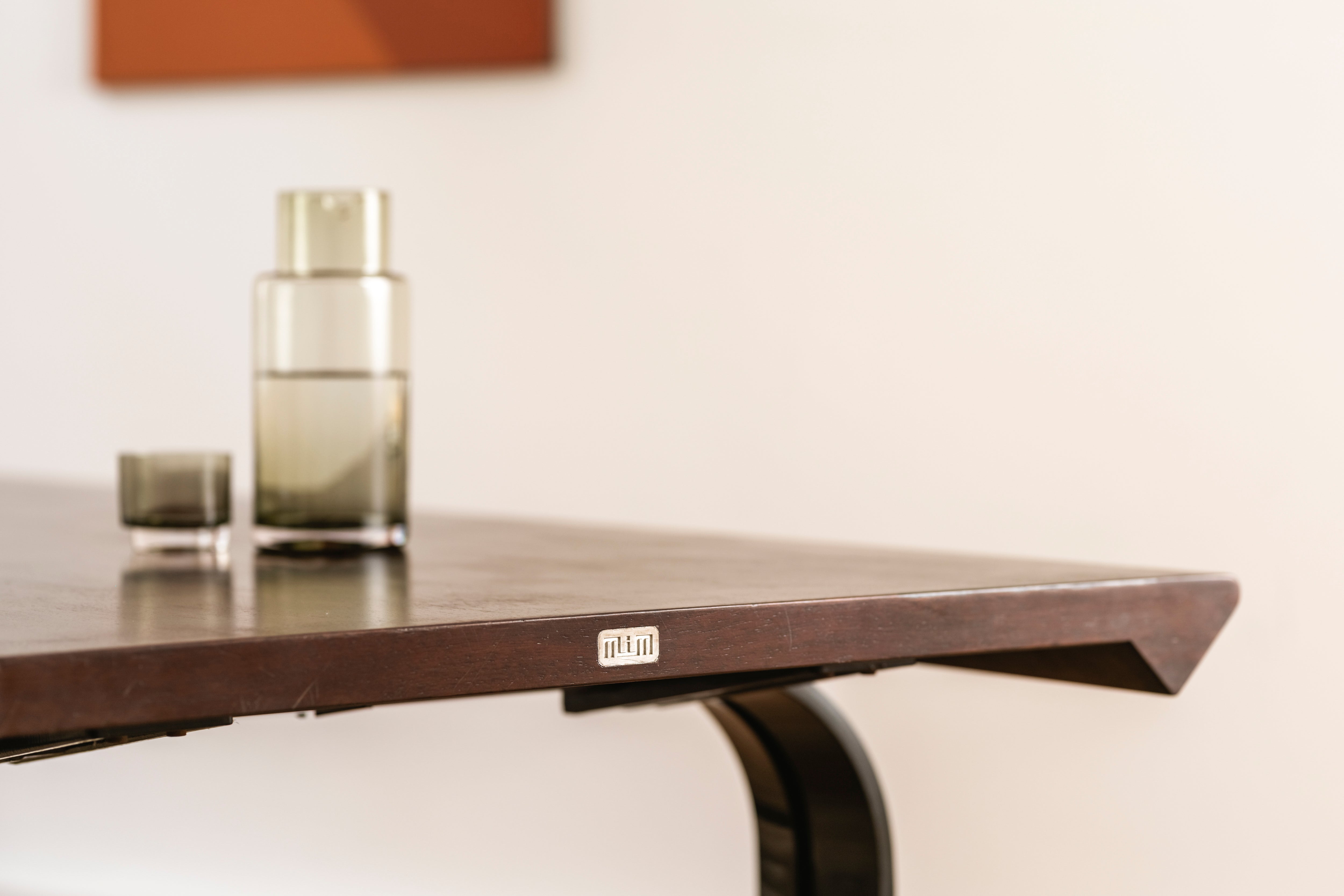 This is far from your average desk. Designed and produced by the renowned Italian studio MIM Roma, this piece captures the spirit of a transformative era in design. Crafted in rich mahogany and sleek aluminium, this piece stands out with its bold character and refined elegance.