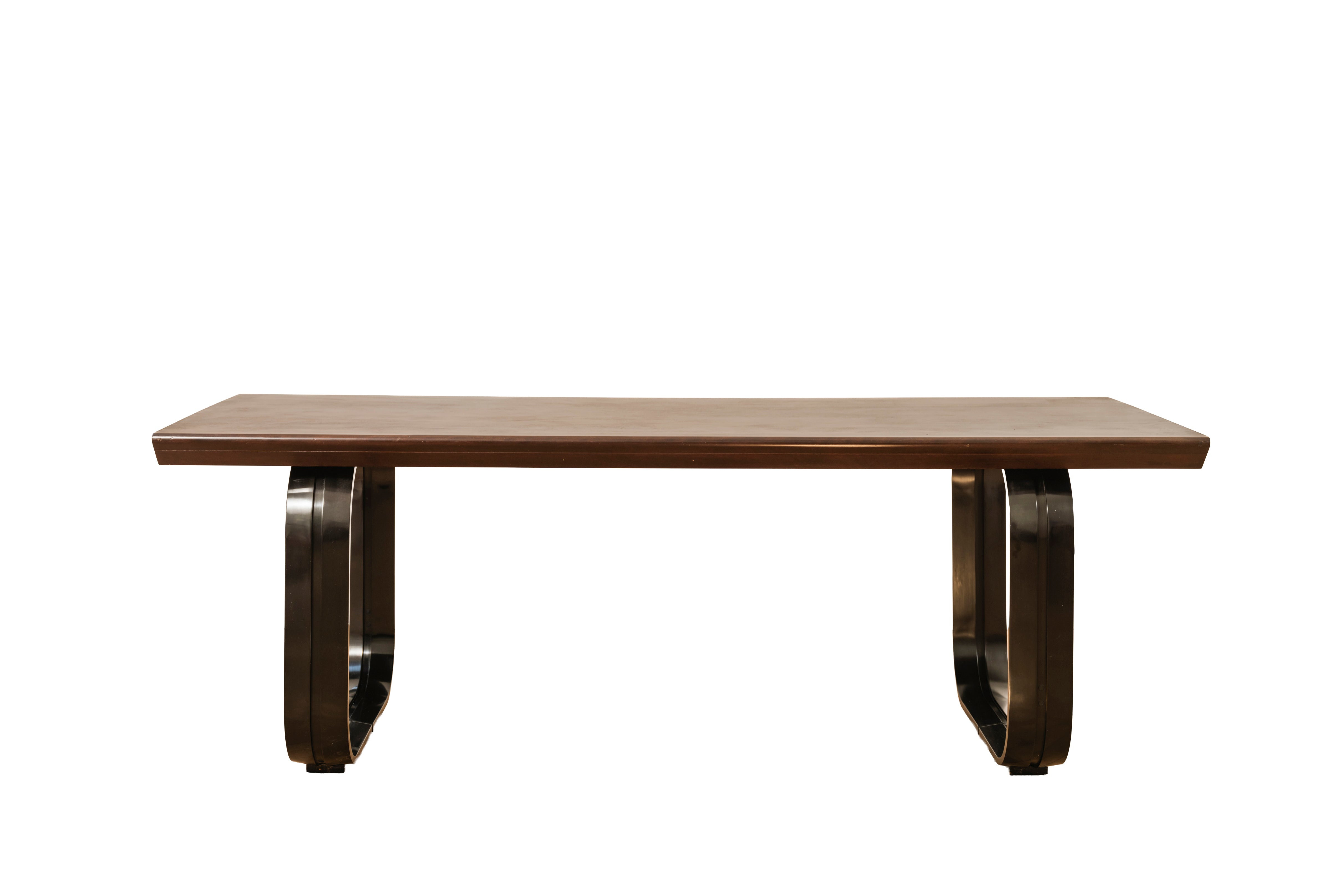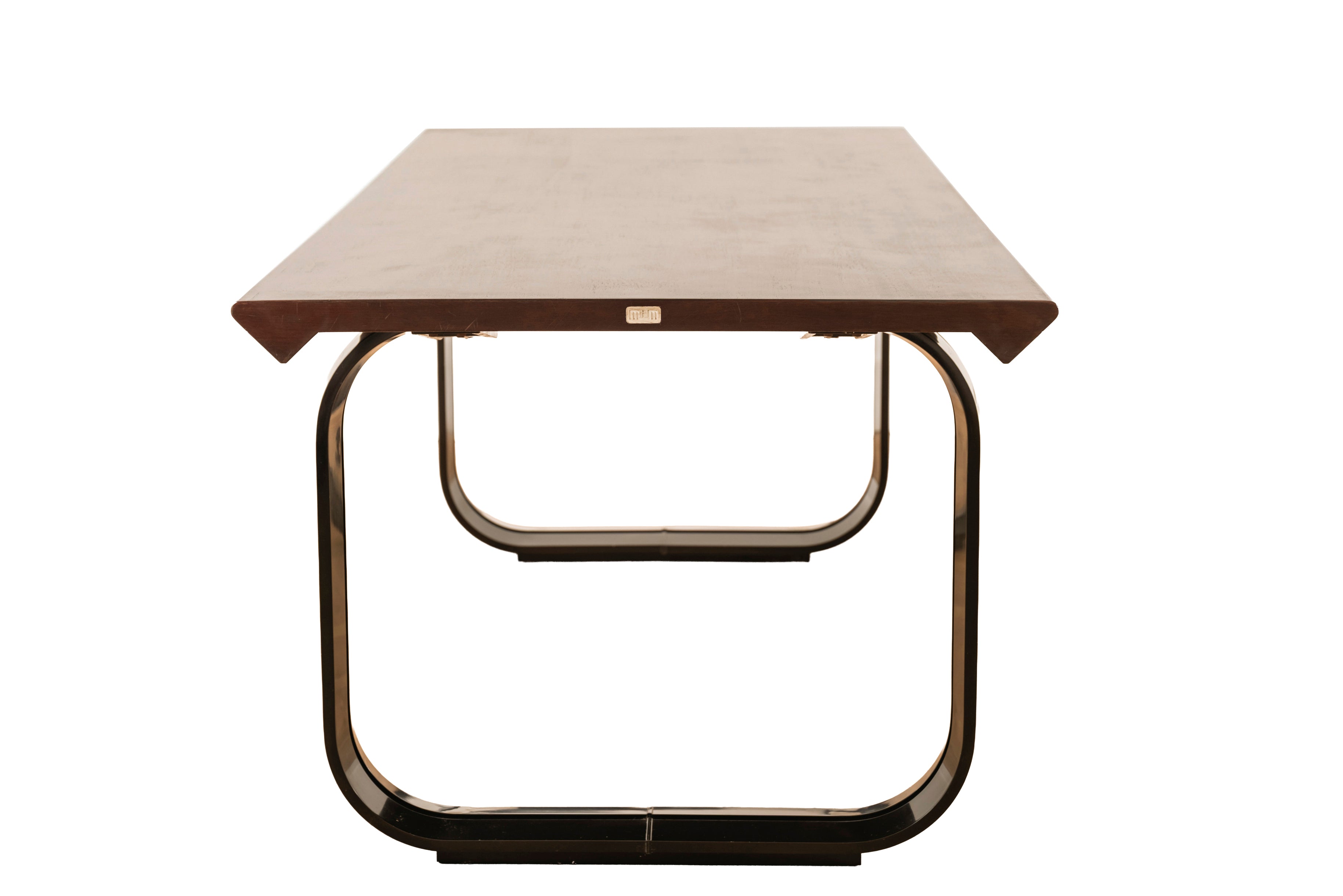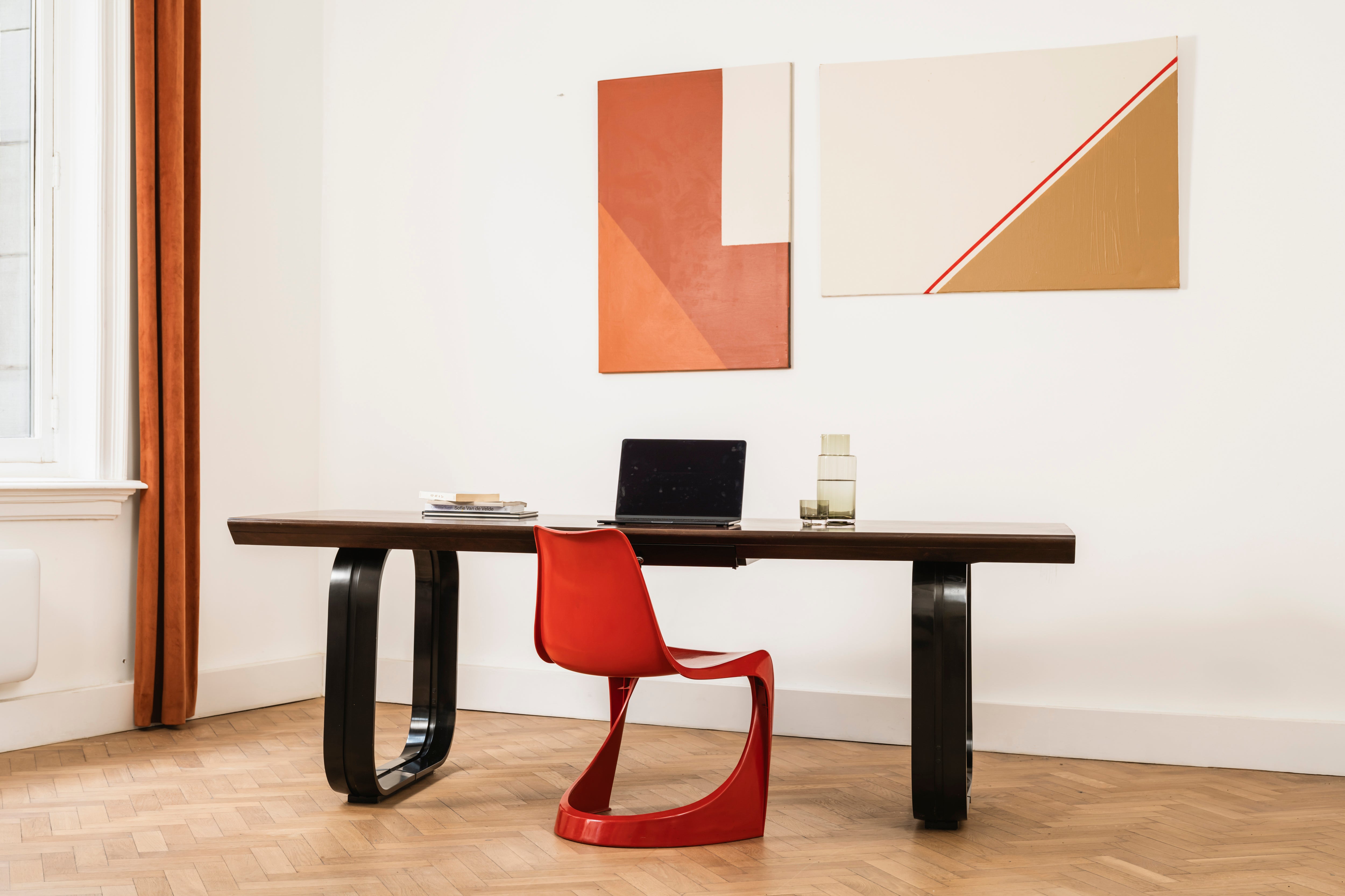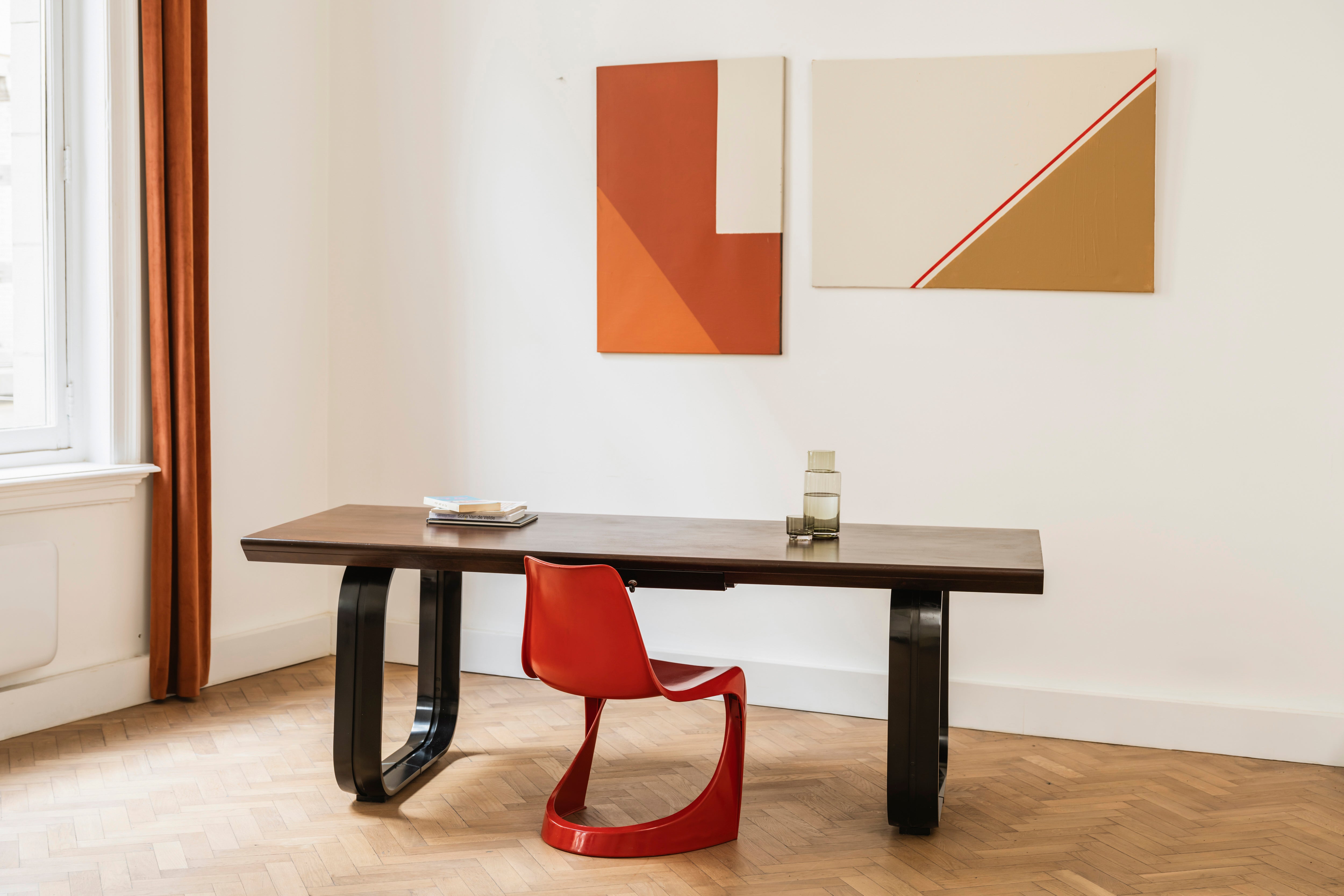This is far from your average desk. Designed and produced by the renowned Italian studio MIM Roma, this piece captures the spirit of a transformative era in design. Crafted in rich mahogany and sleek aluminium, this piece stands out with its bold character and refined elegance.