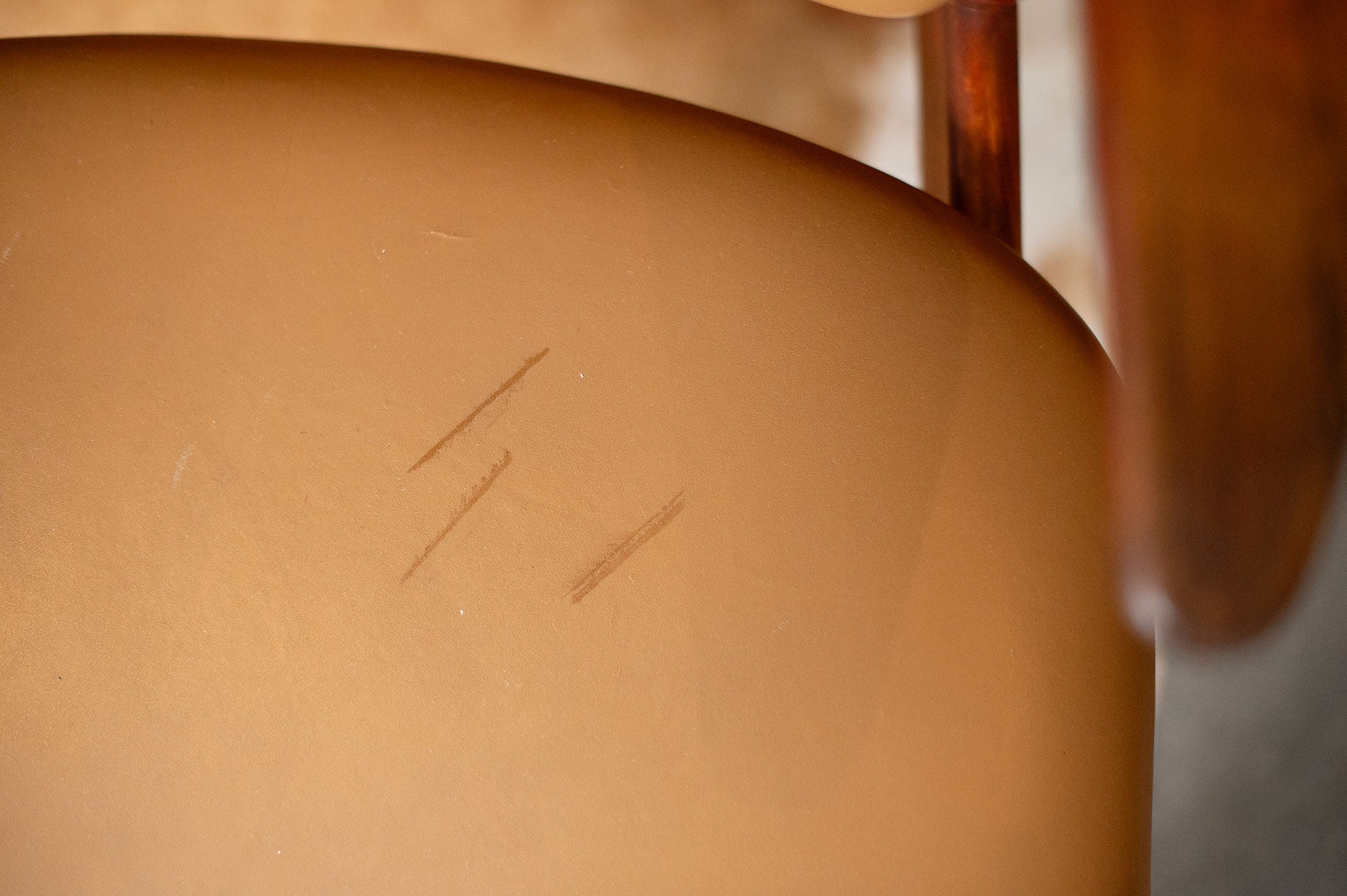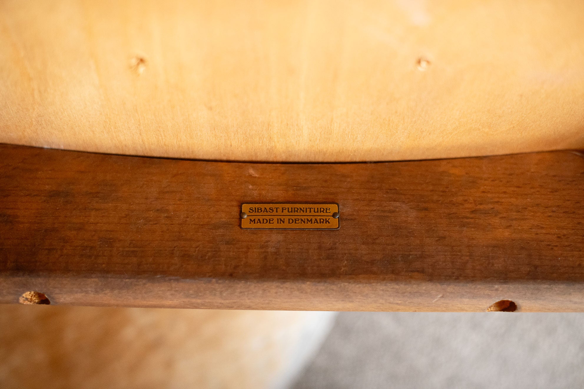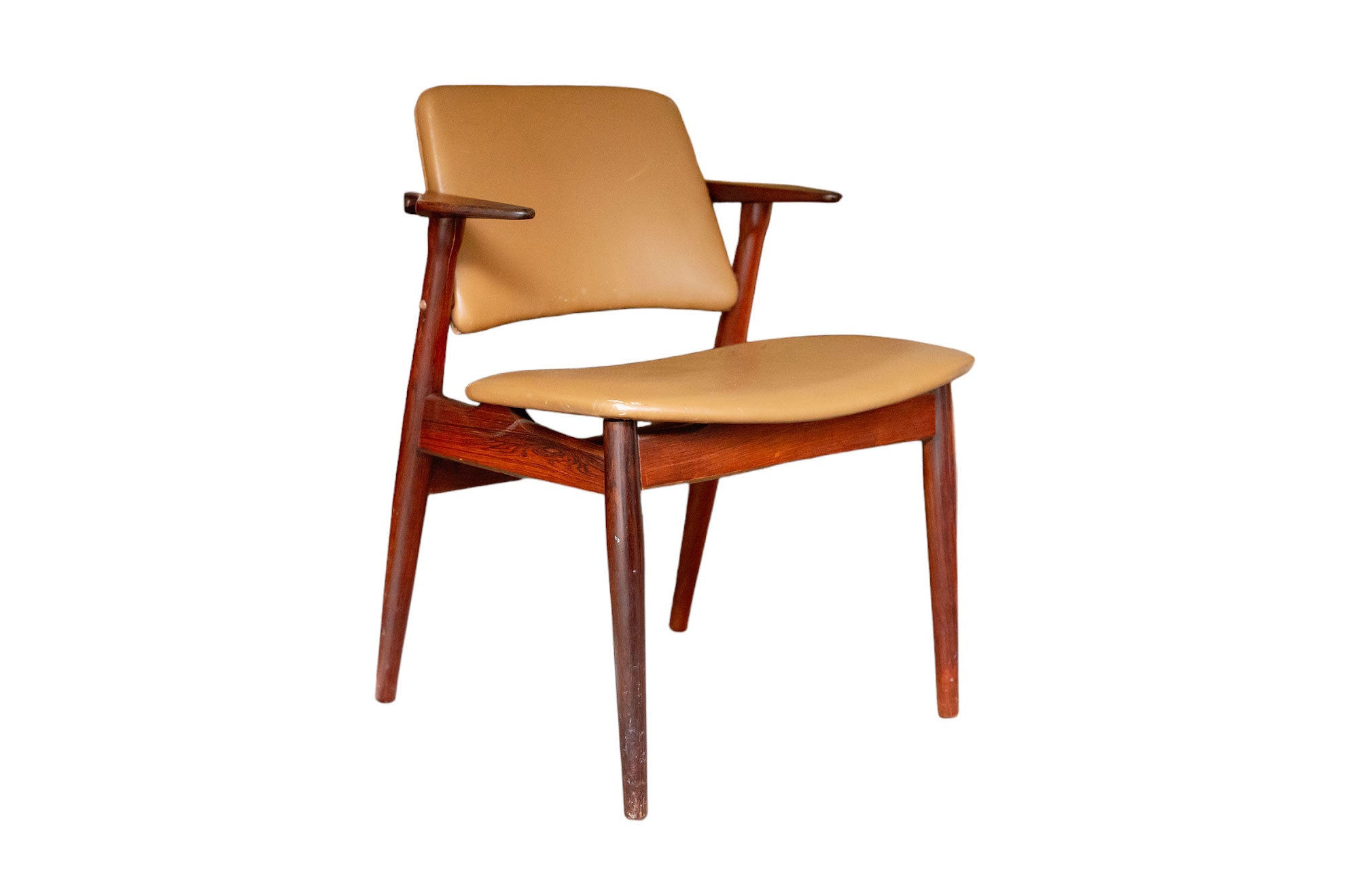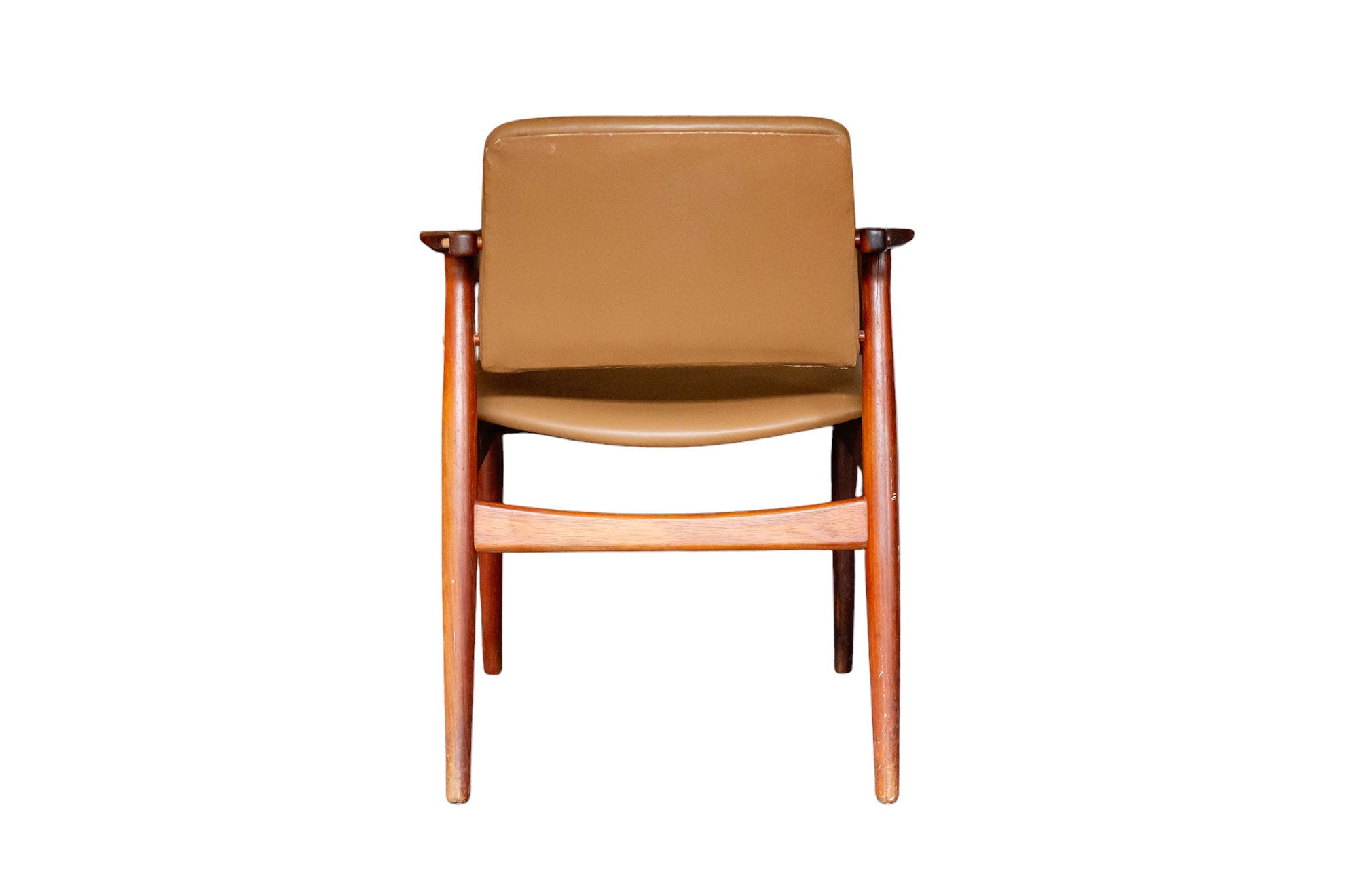Experience luxury and comfort with this elegant office chair by Danish designer Arne Vodder. Designed for Sibast, this chair features light brown skai leather and elegant framework. Some traces of use but in good solid condition.