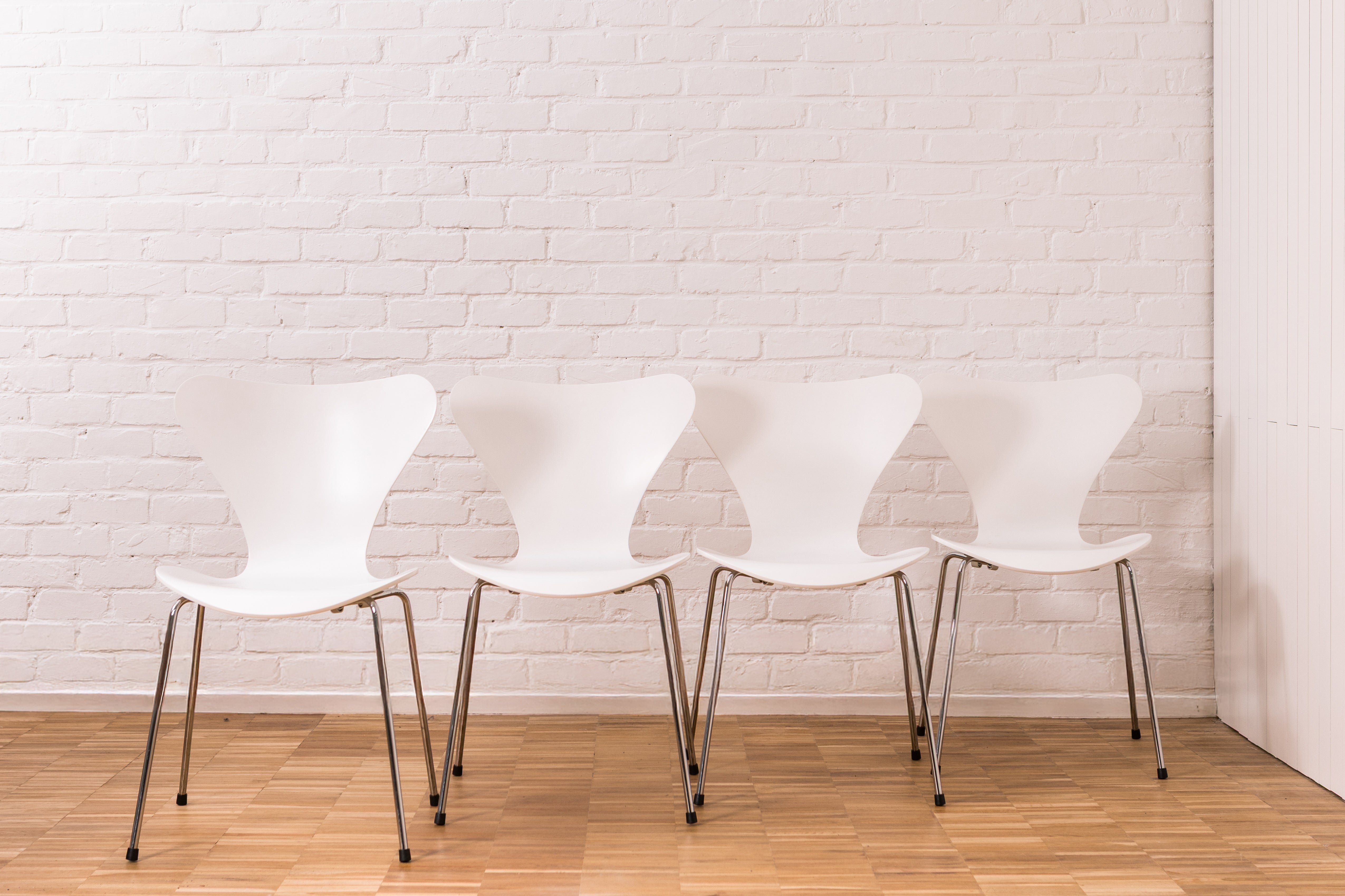 The Butterfly chairs complement the table perfectly with their sculptural form and enduring modernist character, making this set ideal for both private interiors and professional environments. All items are original Fritz Hansen pieces and retain their manufacturer’s authenticity labels. Both the table and the chairs are in good condition.
