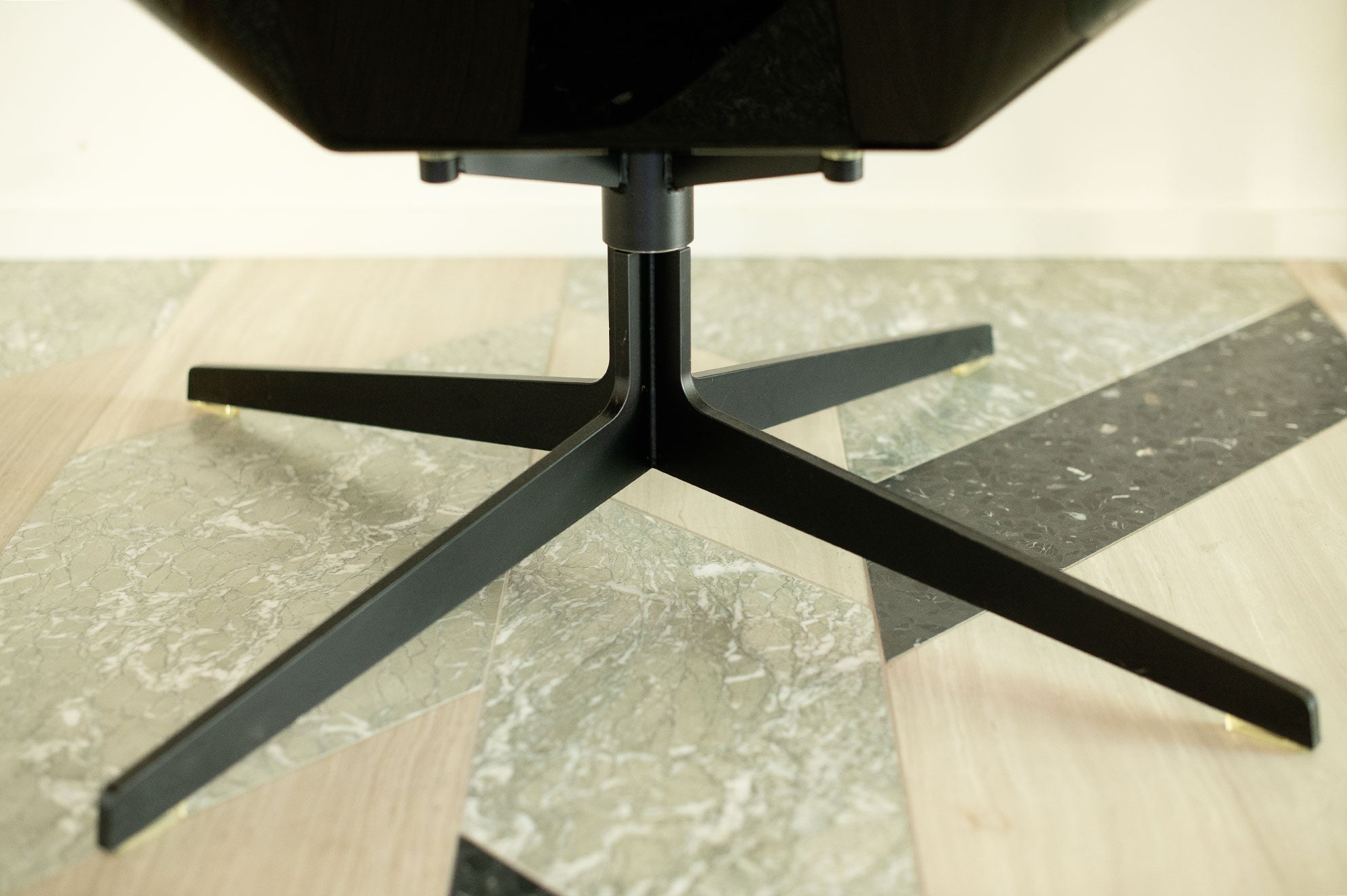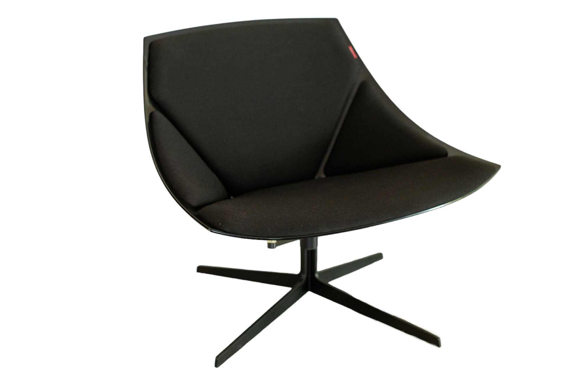 Luxurious and contemporary, this pair of armchairs from Jürgen Laub and Markus Jehs is a timeless addition to any space. Crafted with a sleek black synthetic shell and black upholstered fabric, these chairs are supported by a strong black steel swivel base for a lasting appeal. A luxurious design from 2006, these armchairs offer a stylish twist on a classic style.
